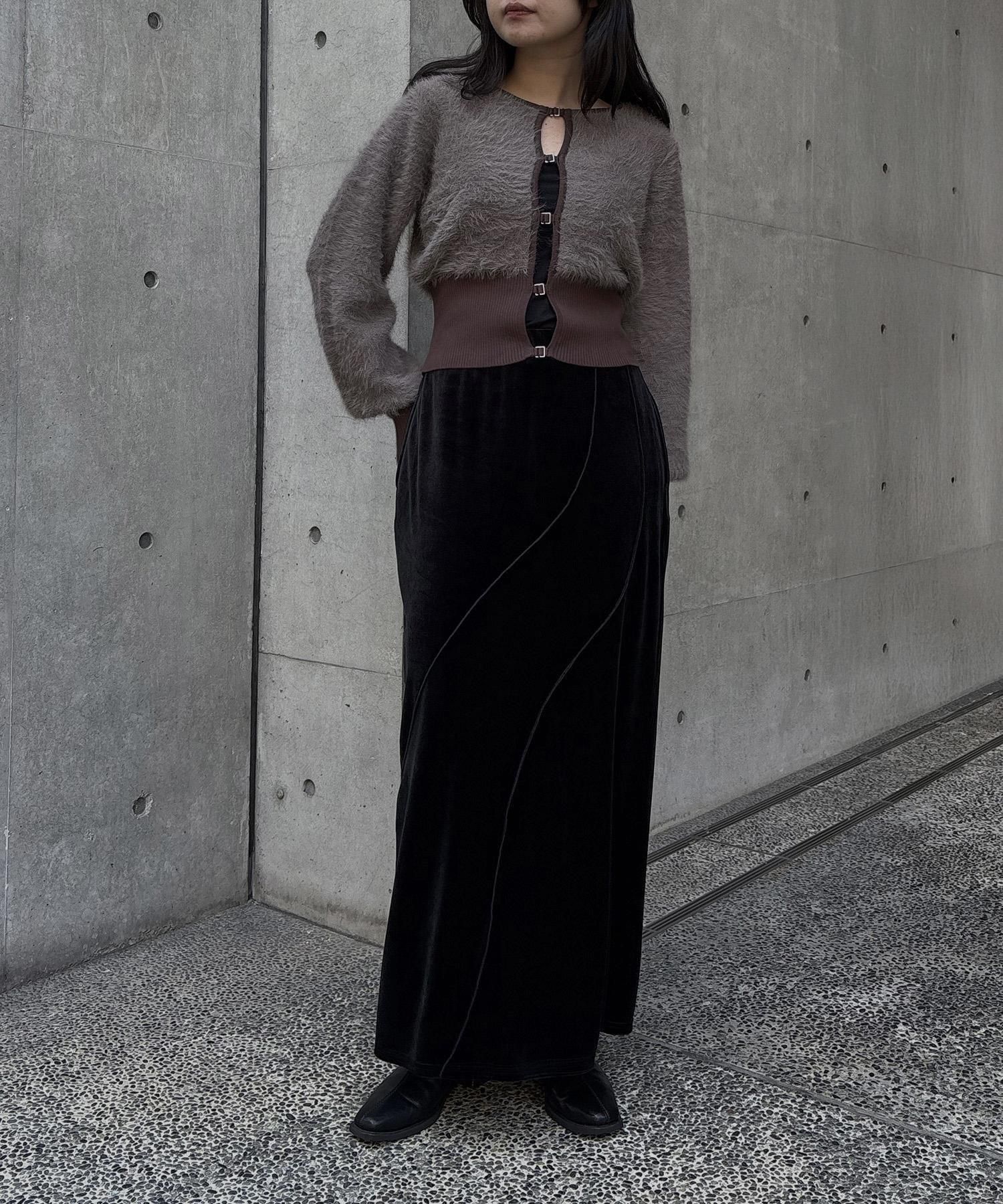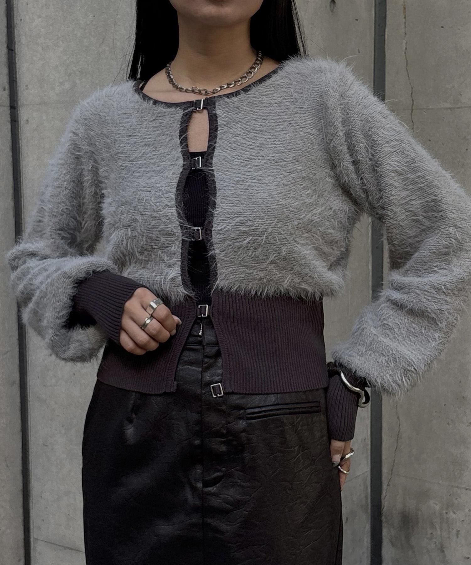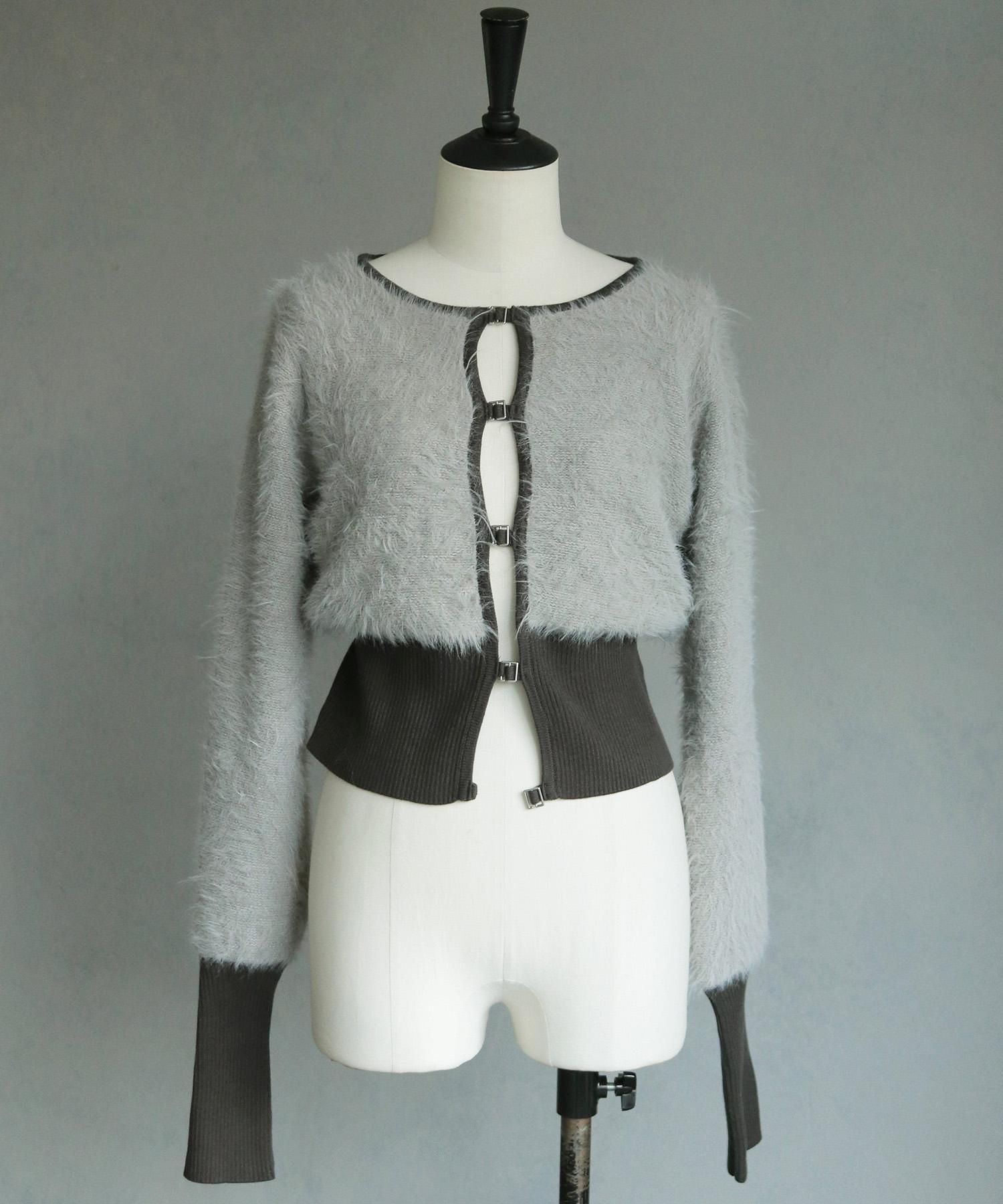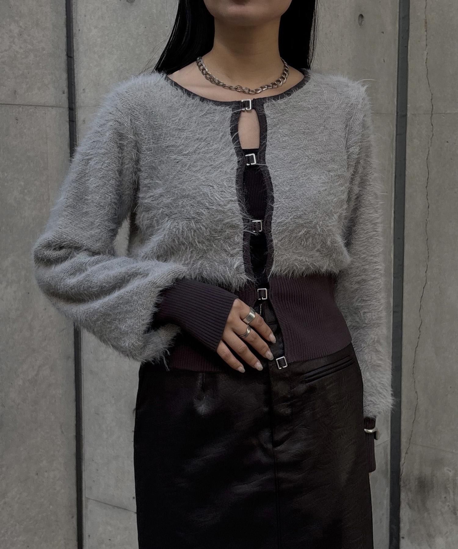 配色がポイントの、秋冬らしいシャギーカーディガン