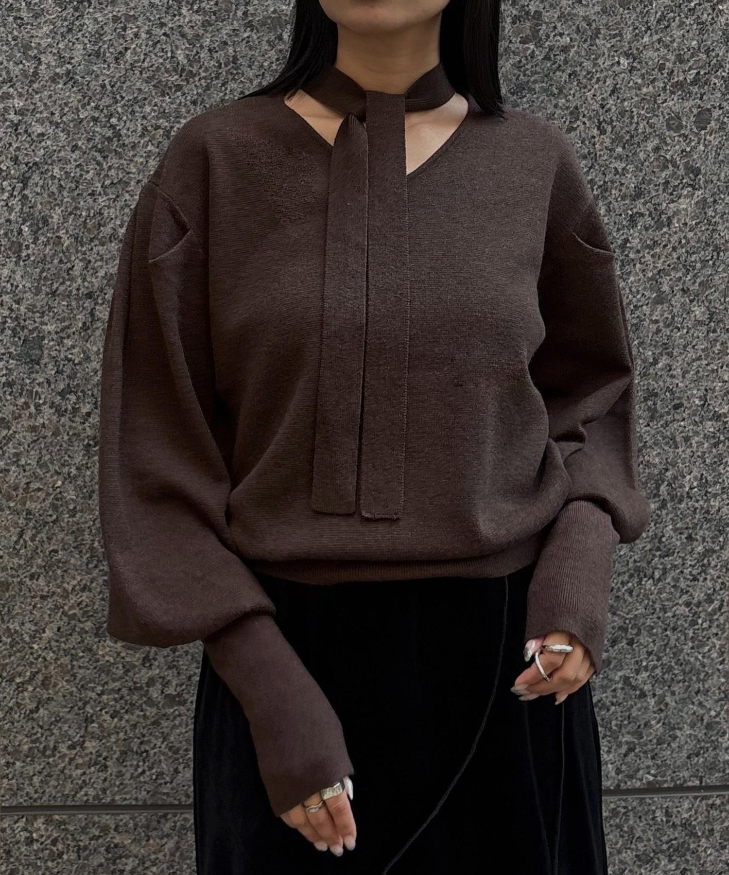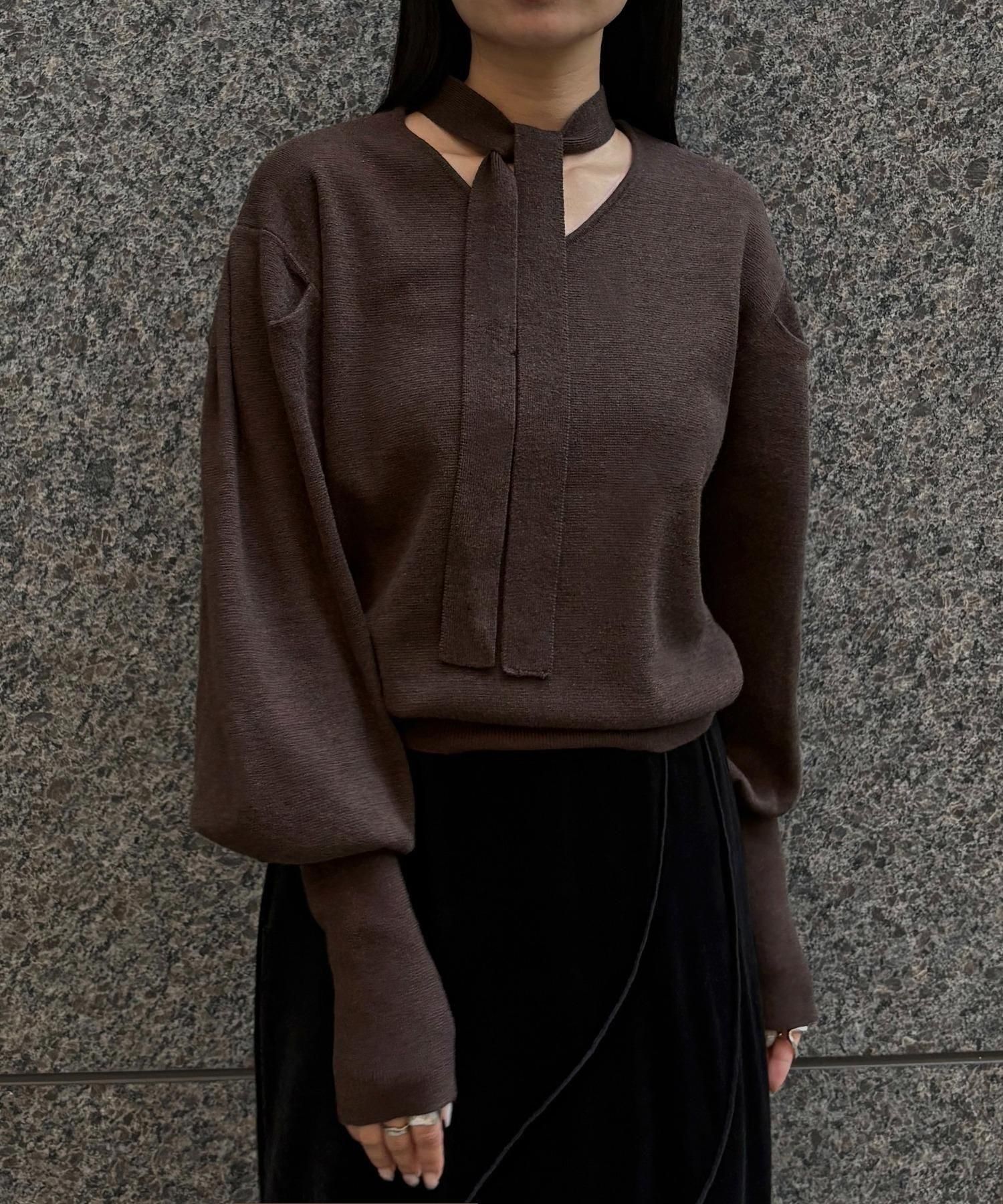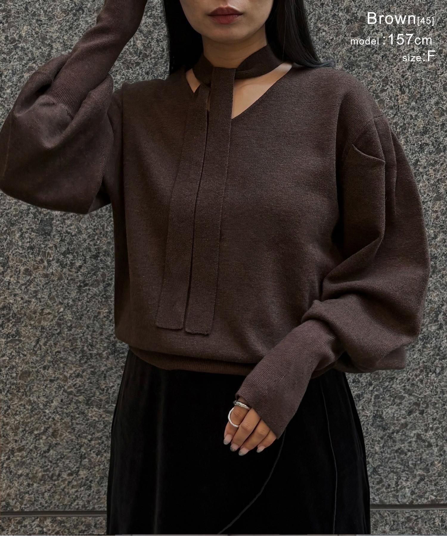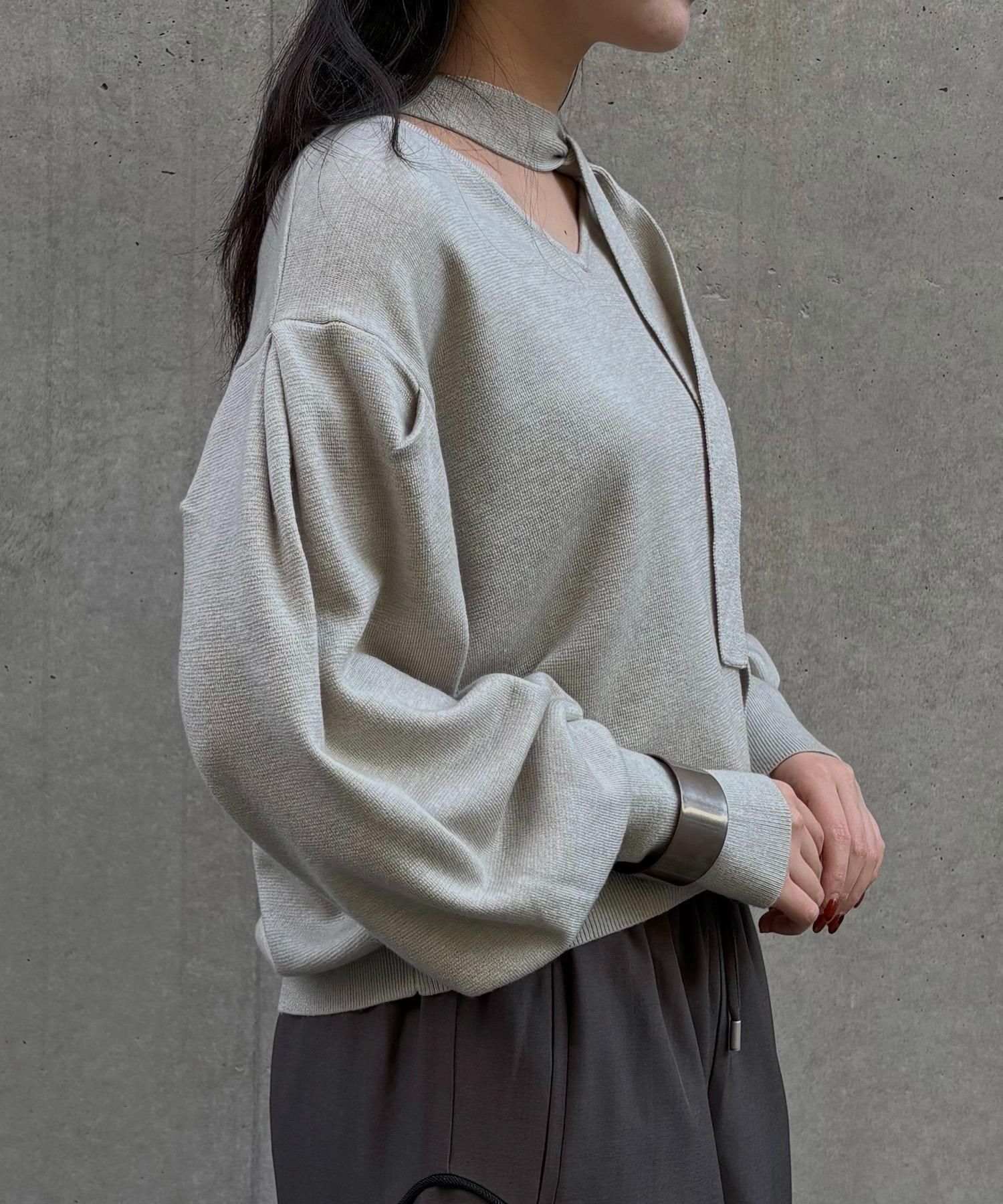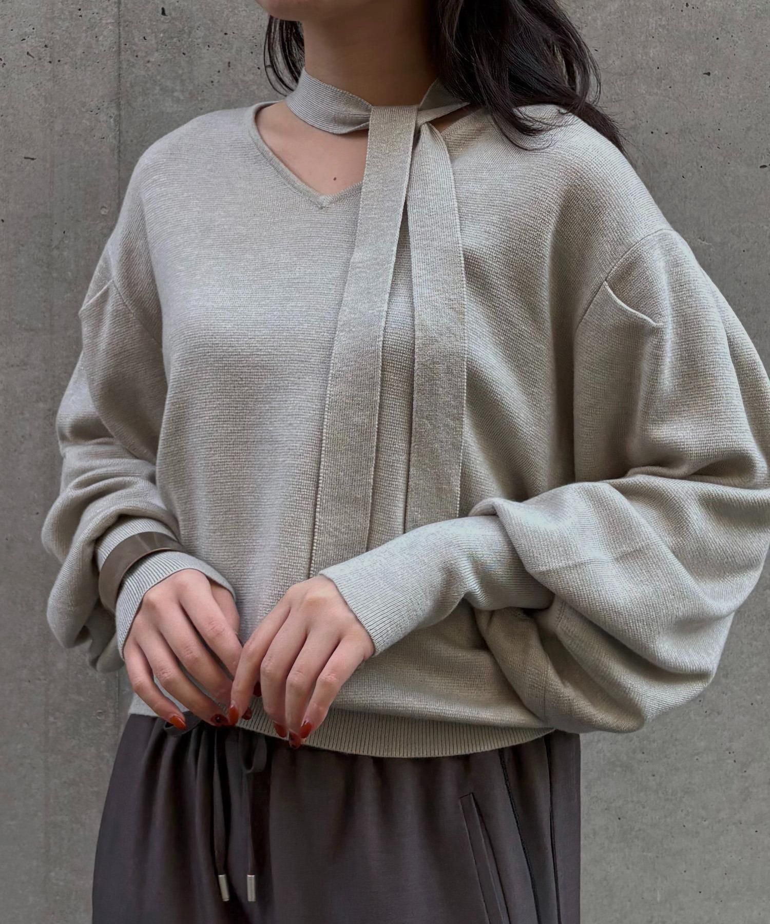 首元のチョーカーディテールが、顔まわりを華やかに魅せてくれるデザインニット。