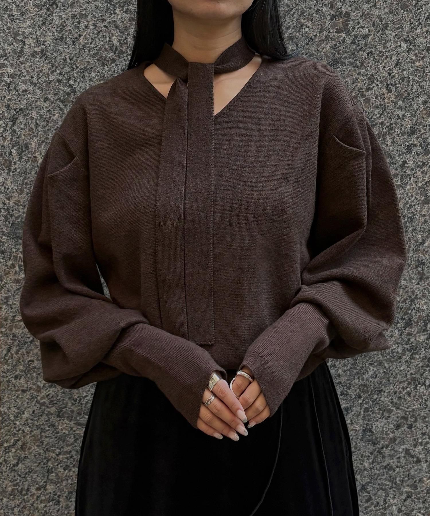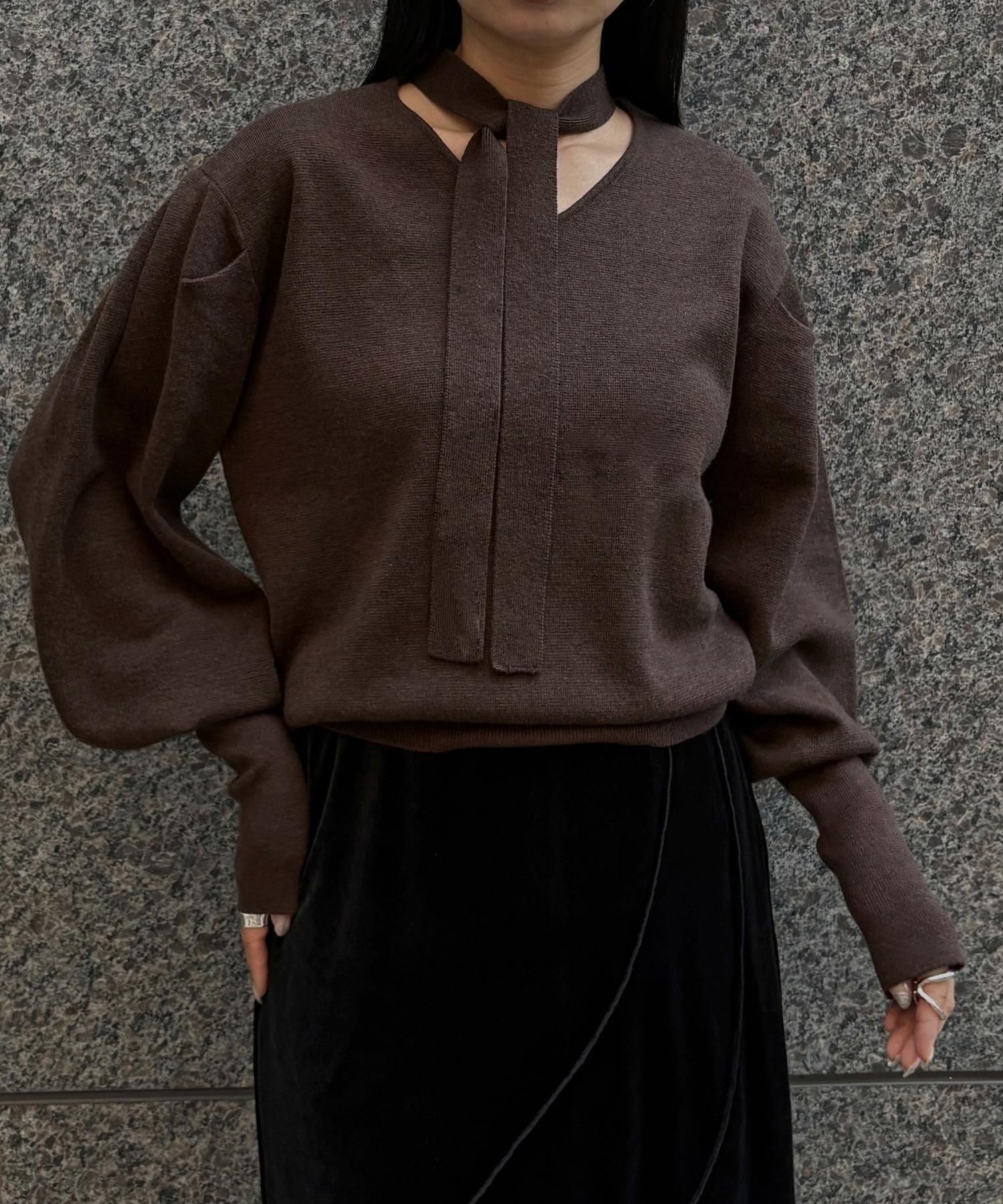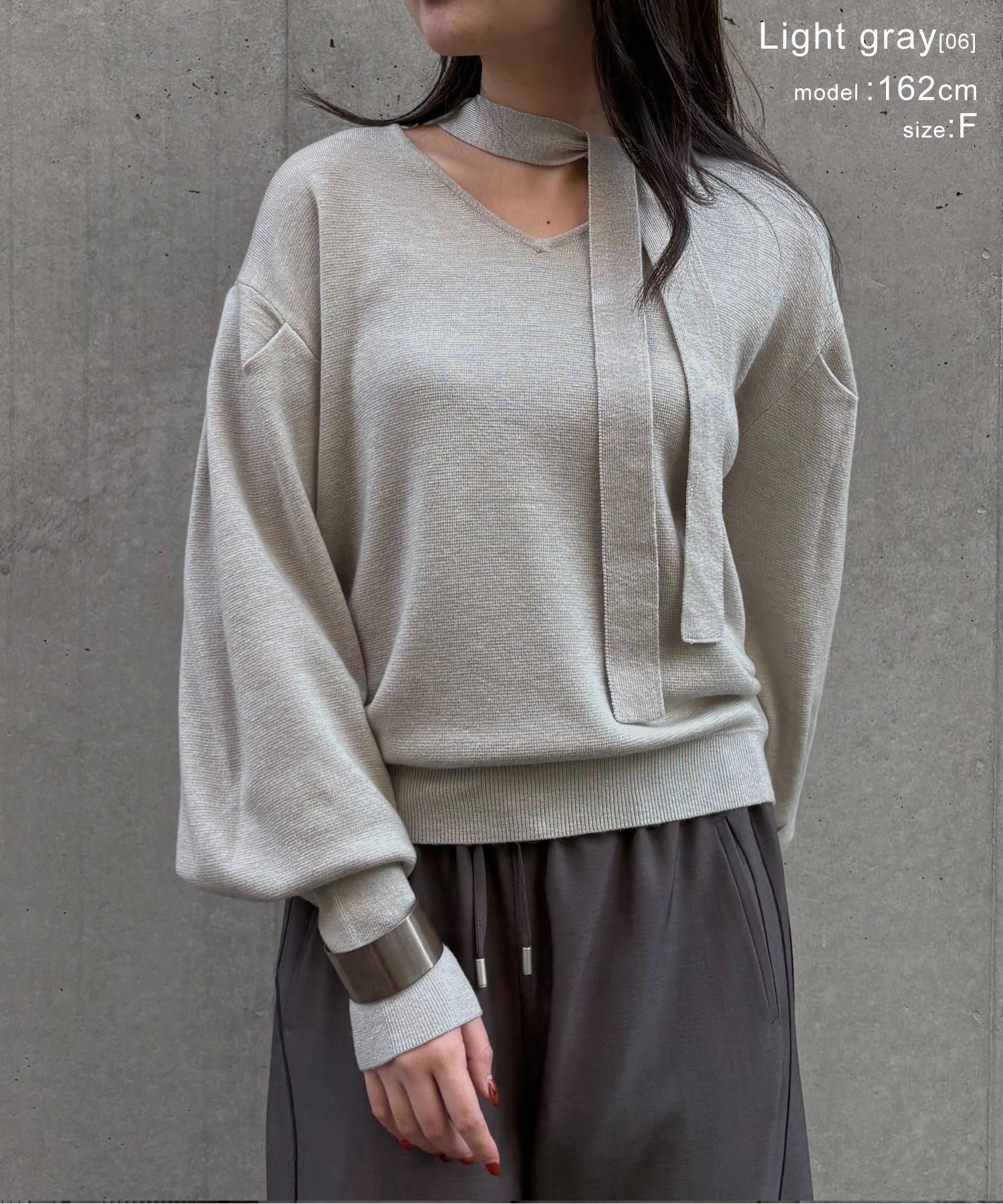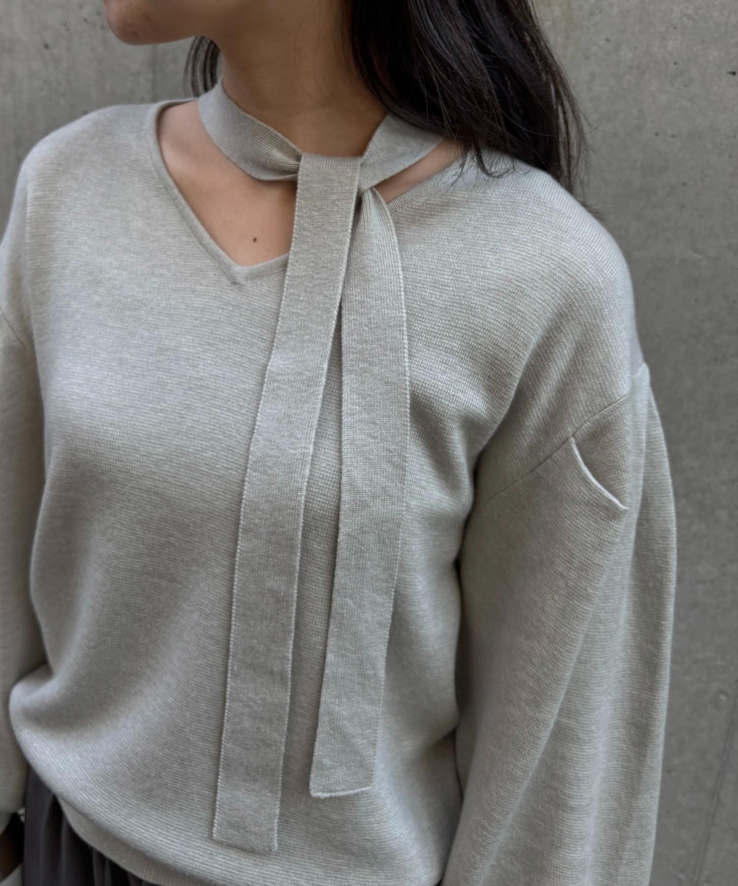 首元のチョーカーディテールが、顔まわりを華やかに魅せてくれるデザインニット。