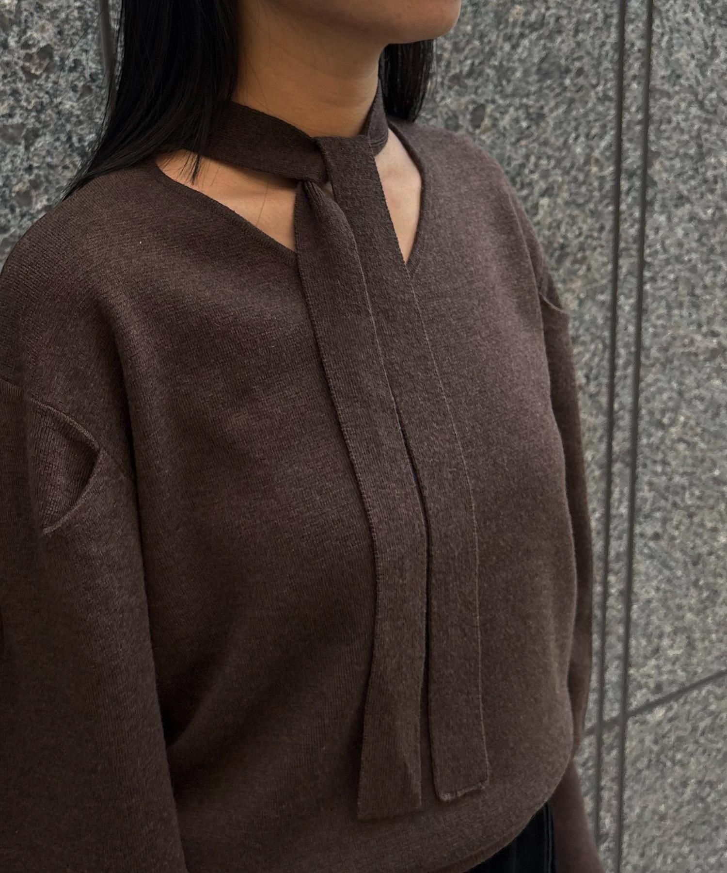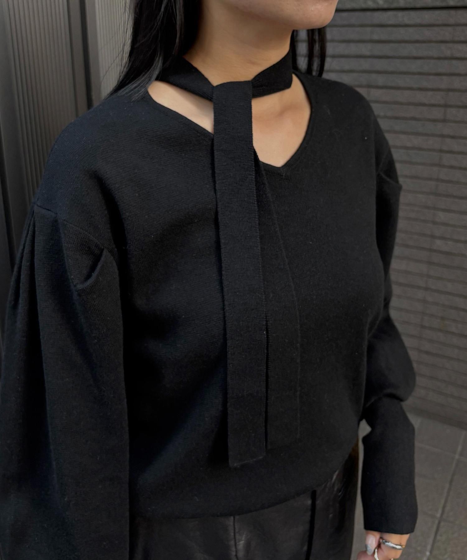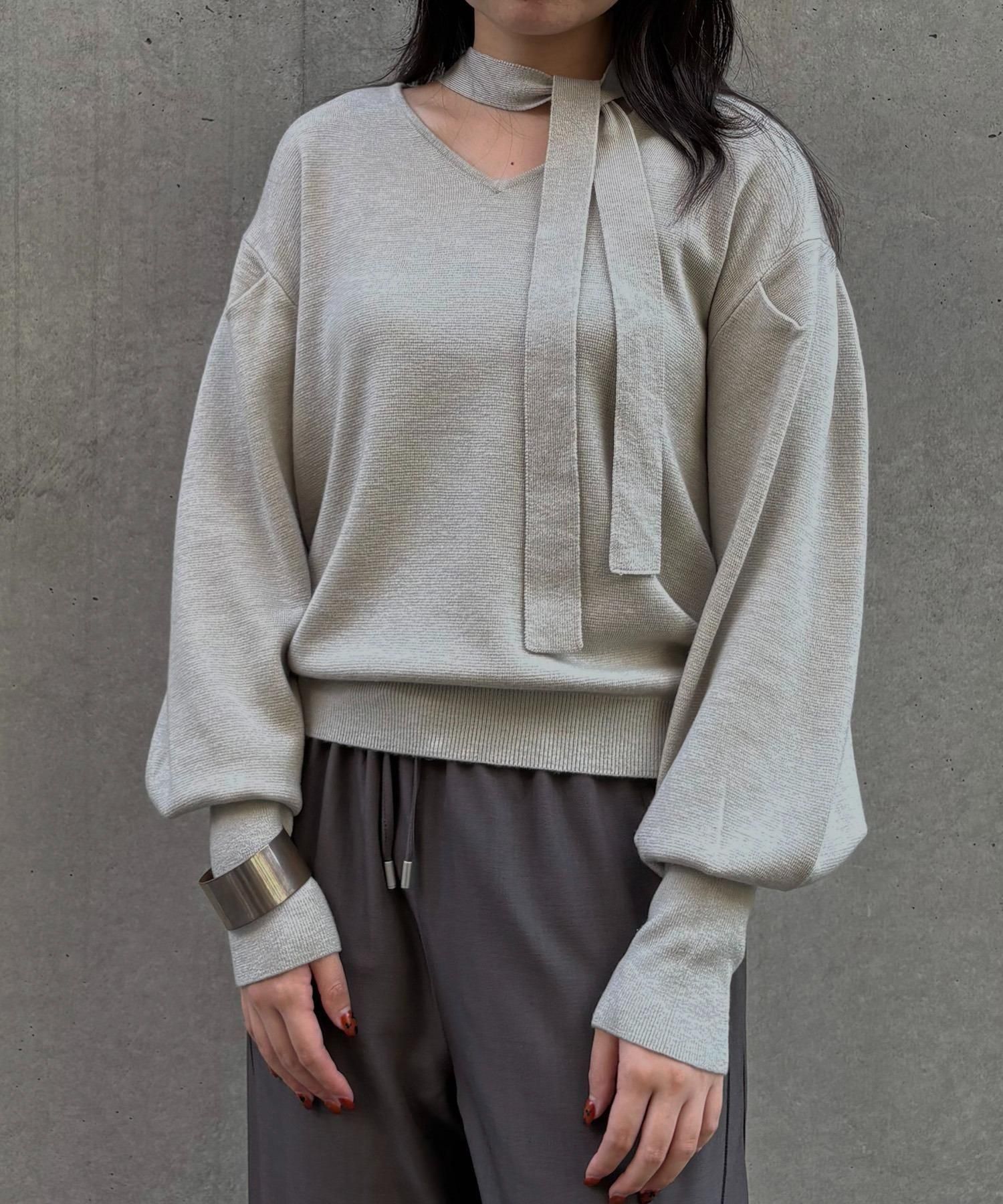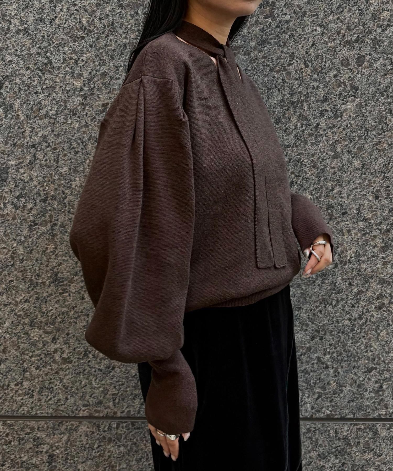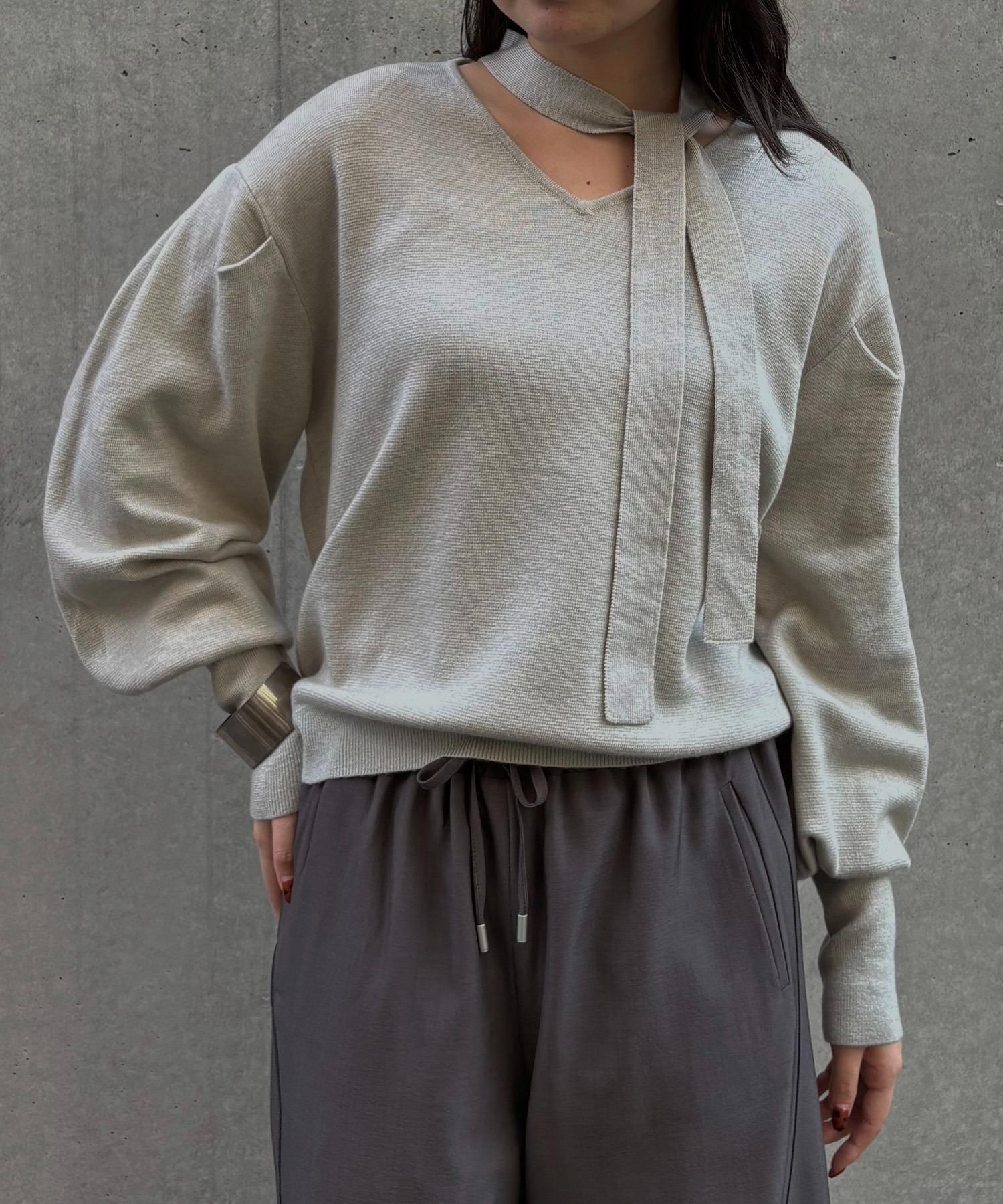 首元のチョーカーディテールが、顔まわりを華やかに魅せてくれるデザインニット。