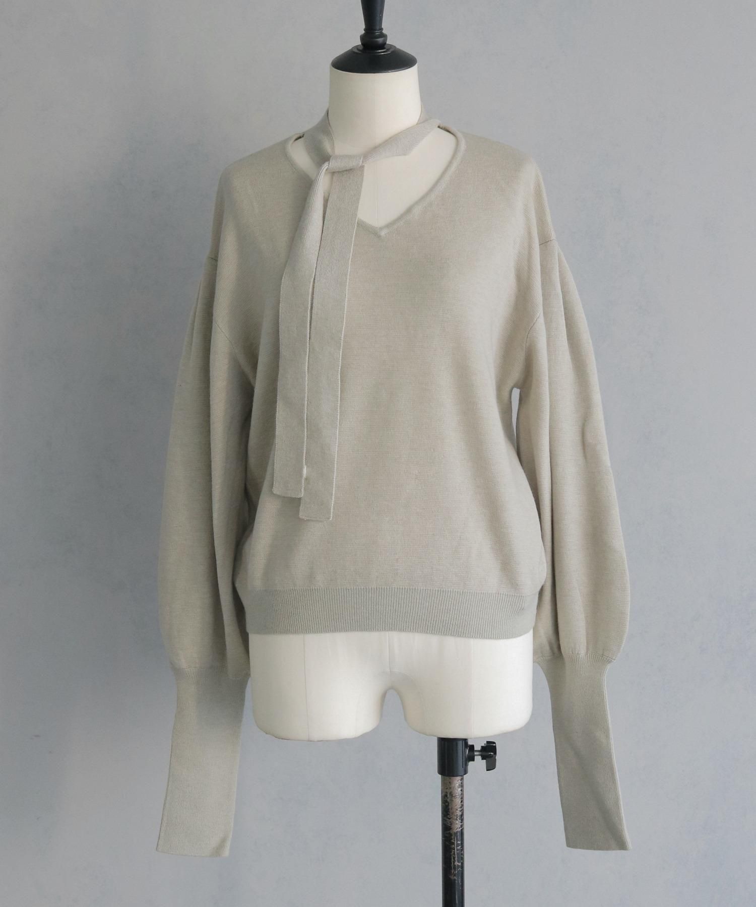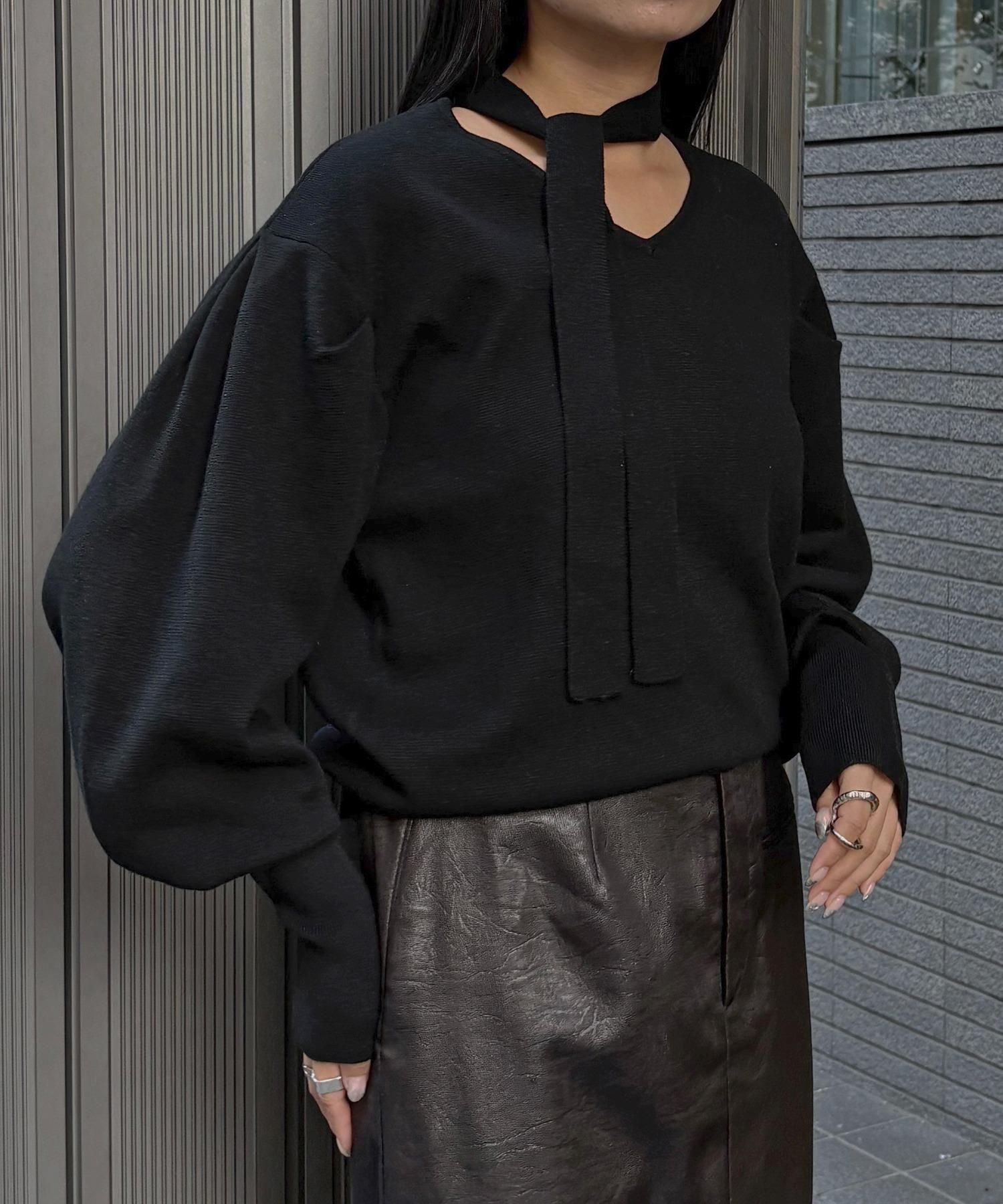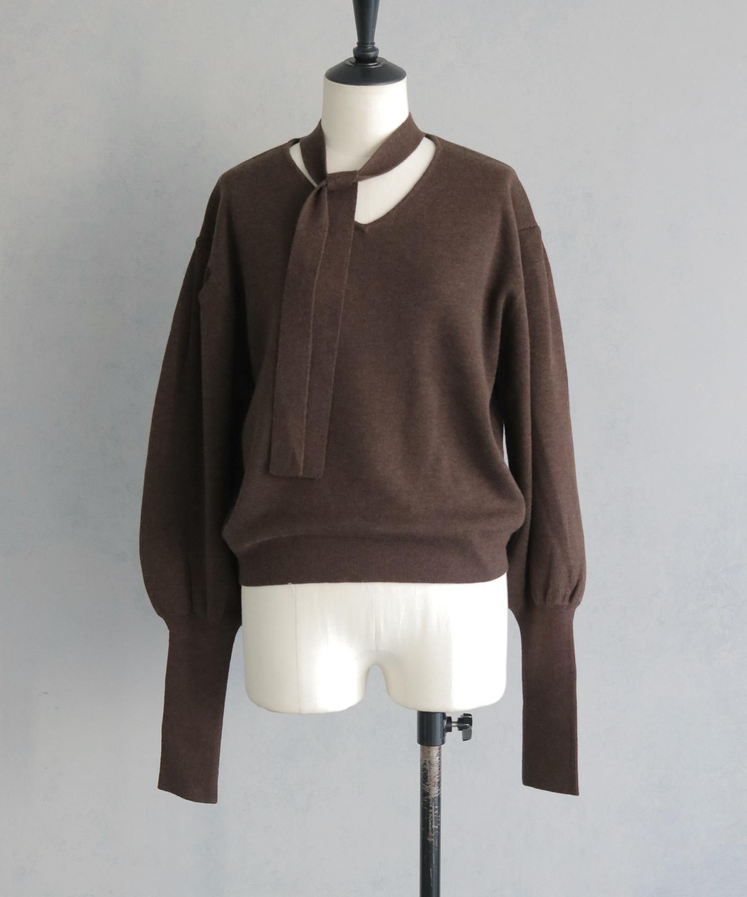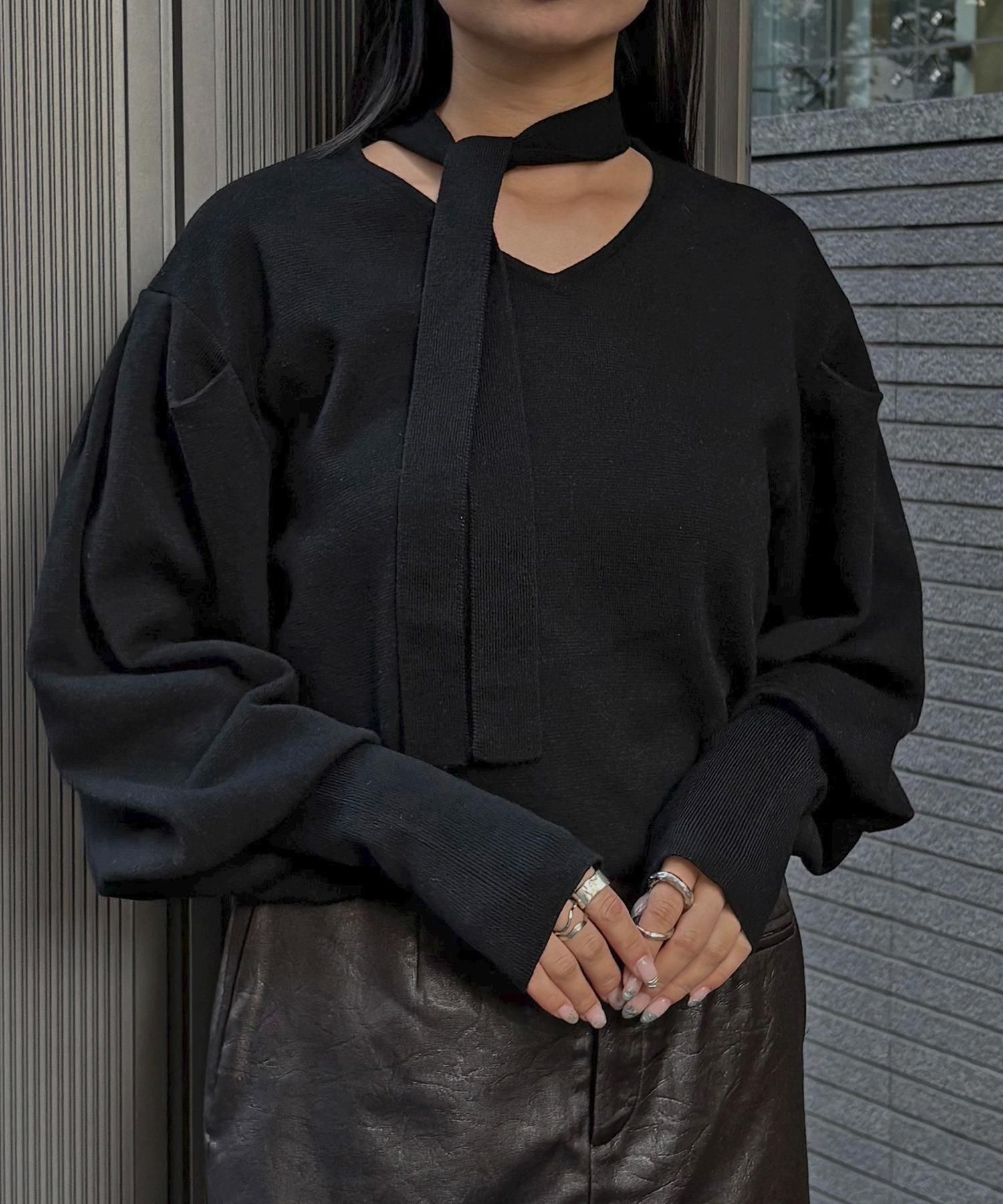 首元のチョーカーディテールが、顔まわりを華やかに魅せてくれるデザインニット。