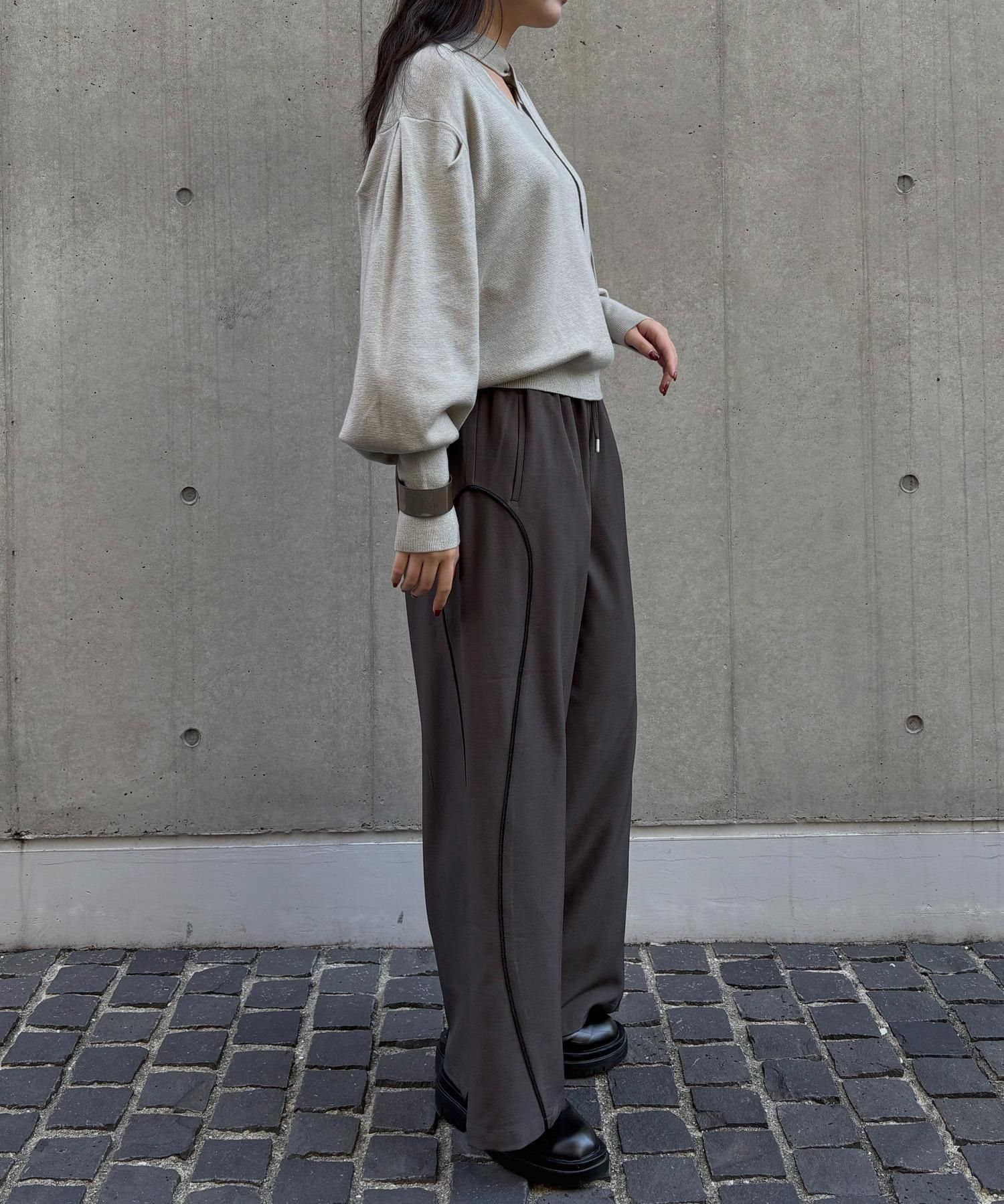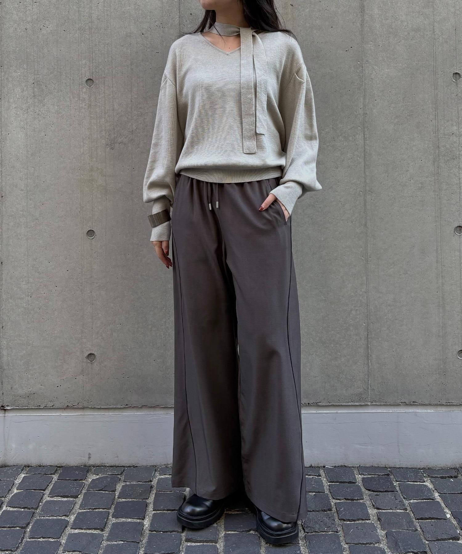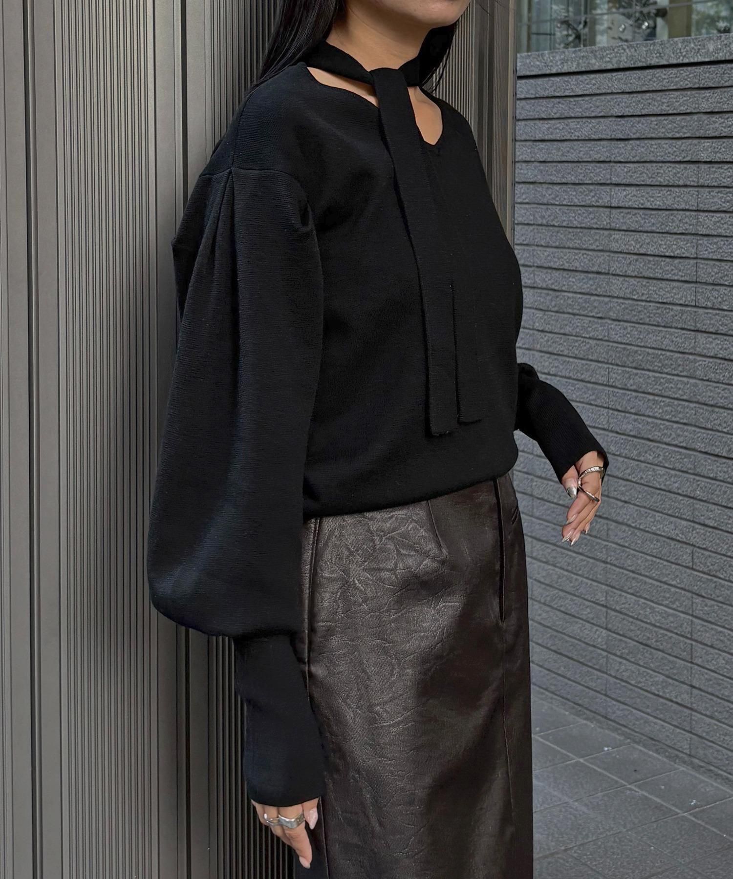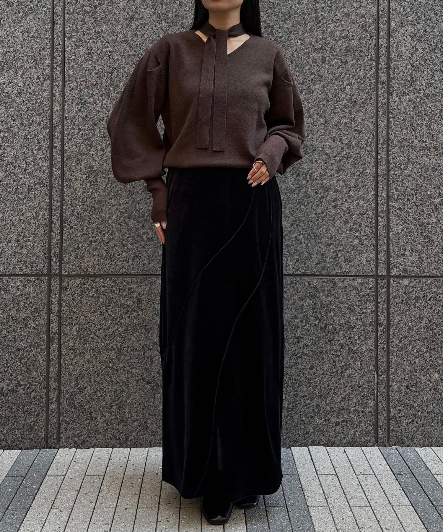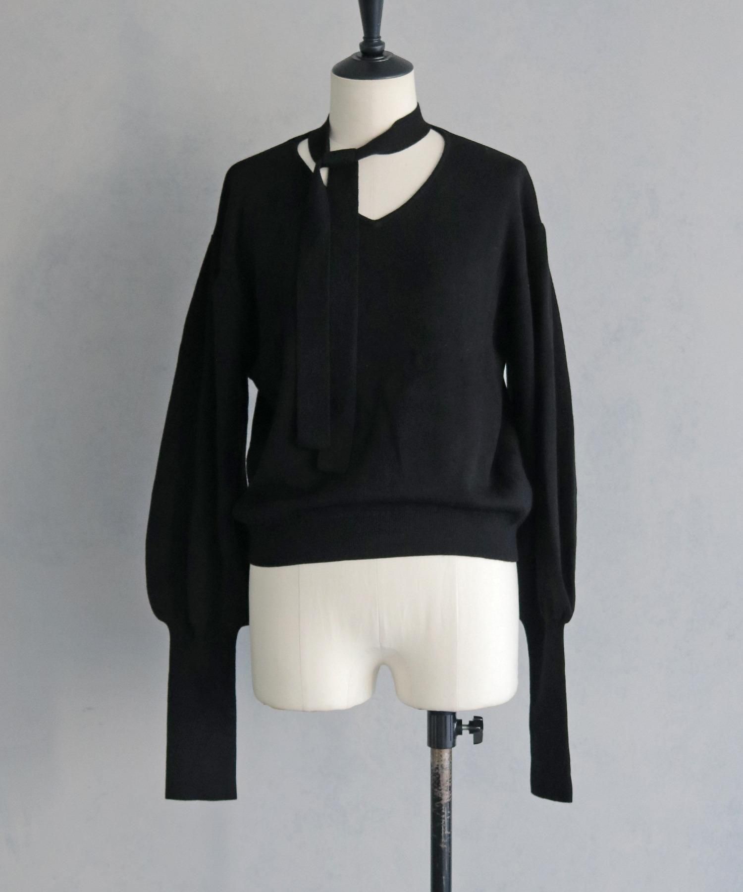 首元のチョーカーディテールが、顔まわりを華やかに魅せてくれるデザインニット。