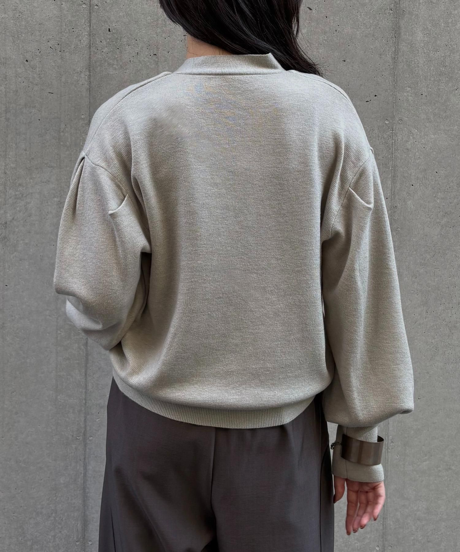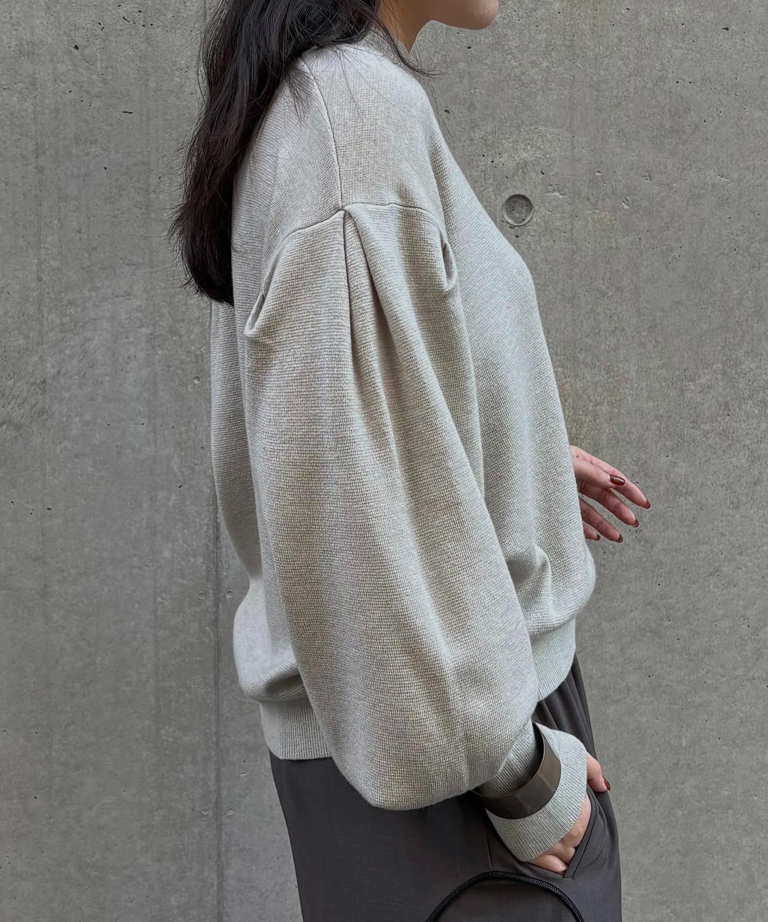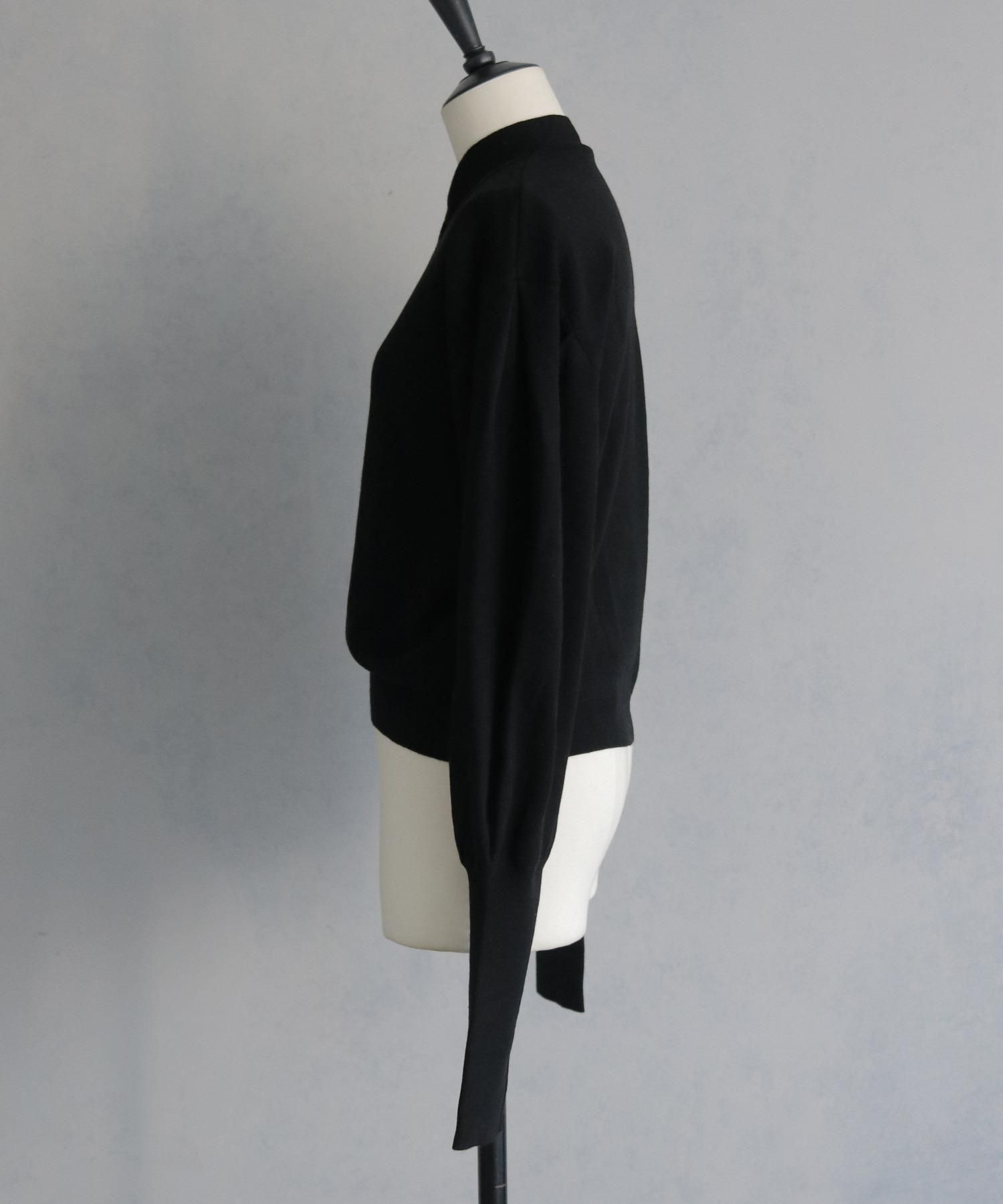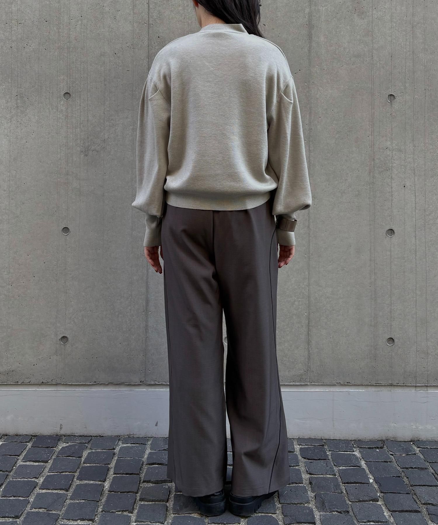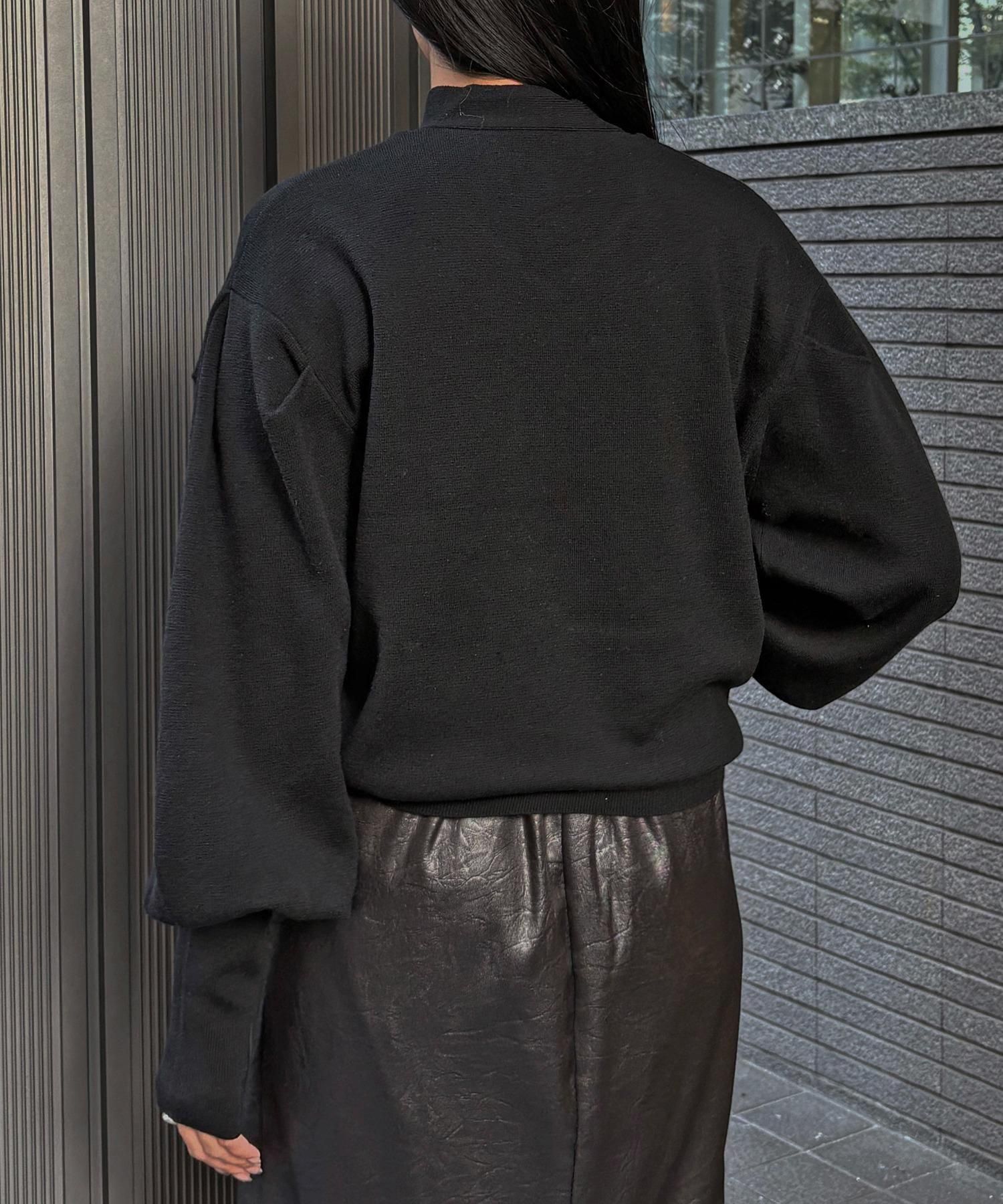 長めの袖リブが腕を細く長く見せ、袖のボリューム感をより引き立てます。