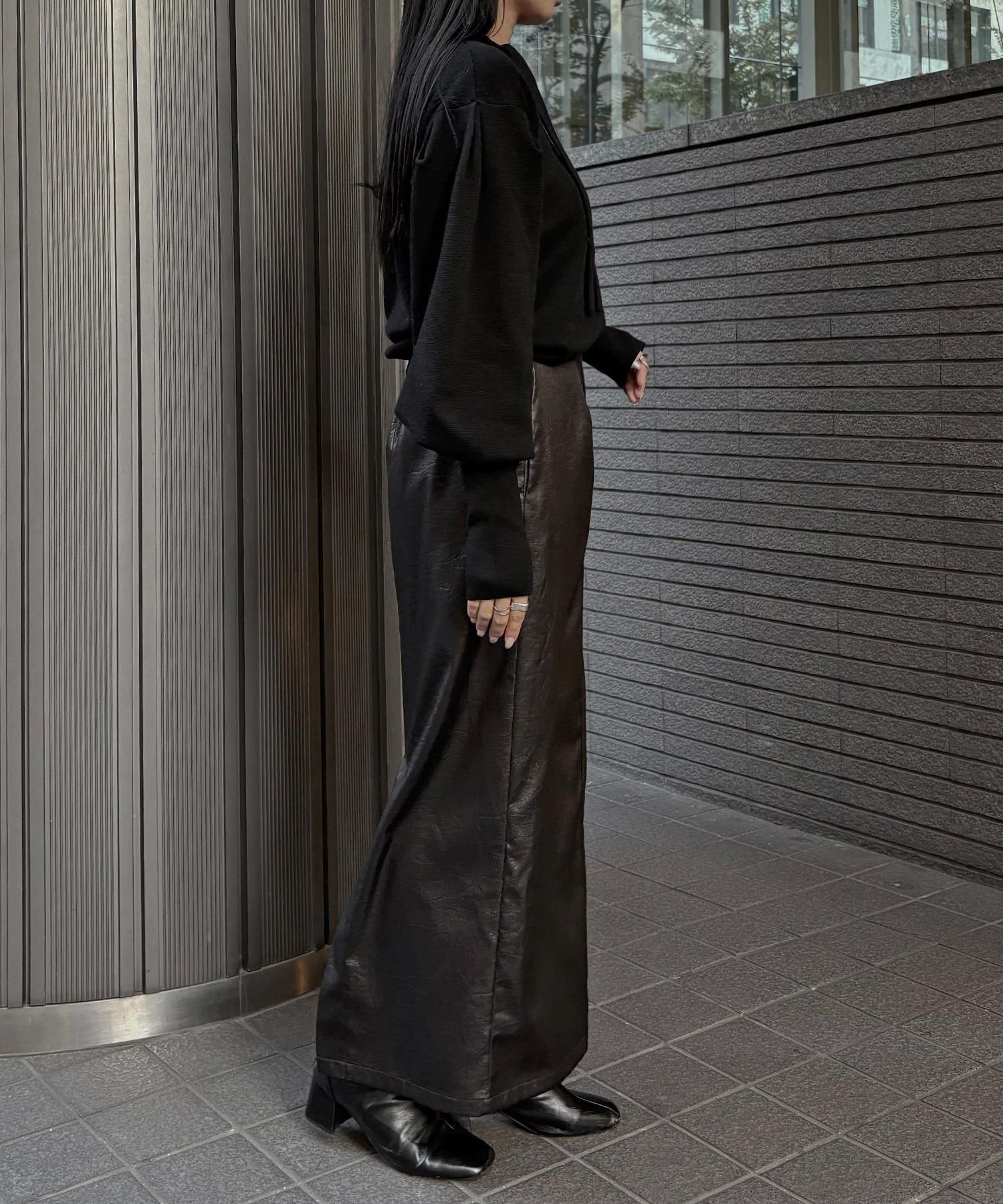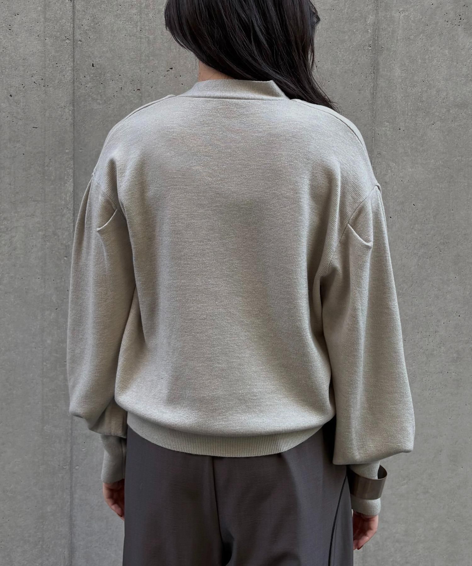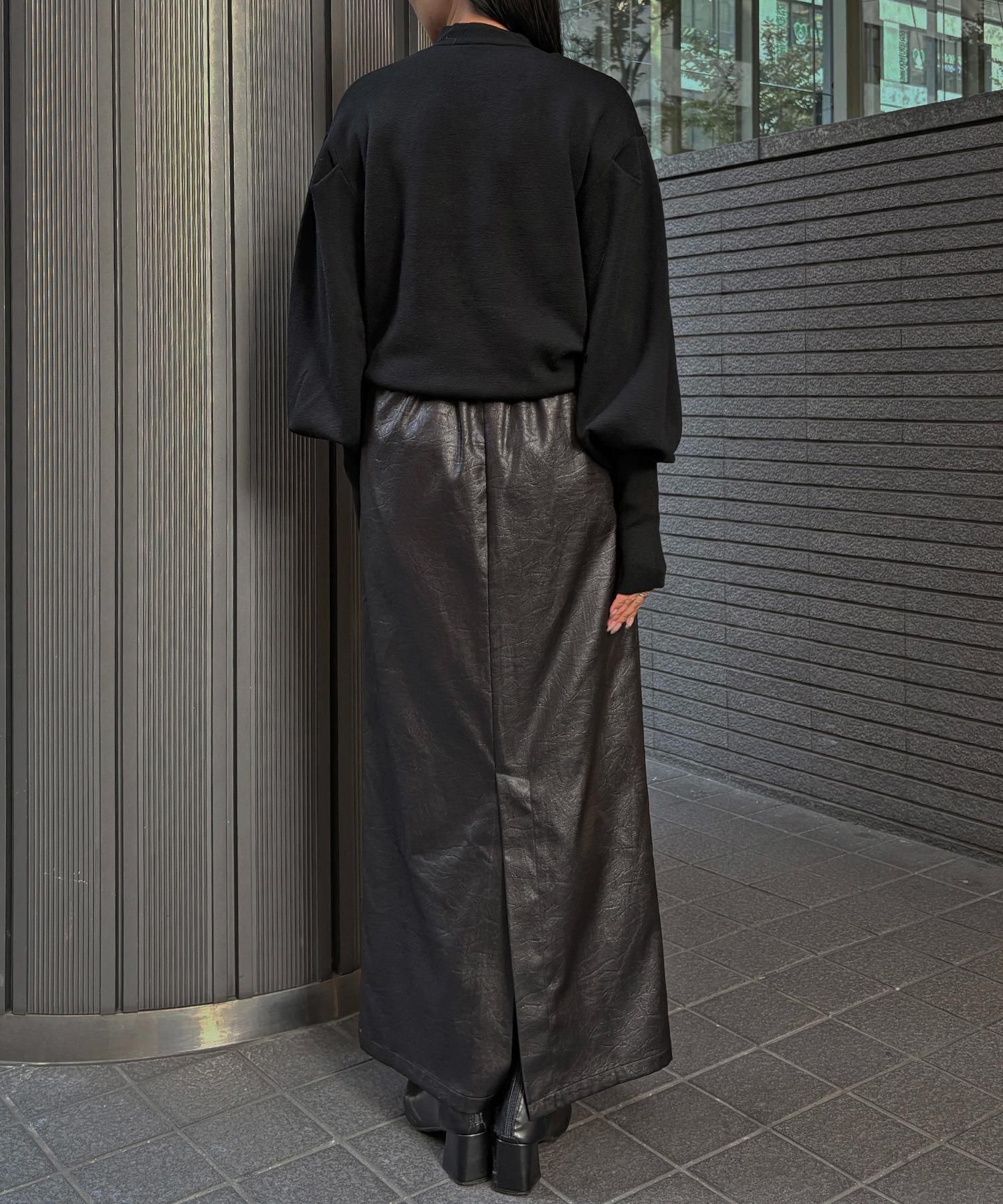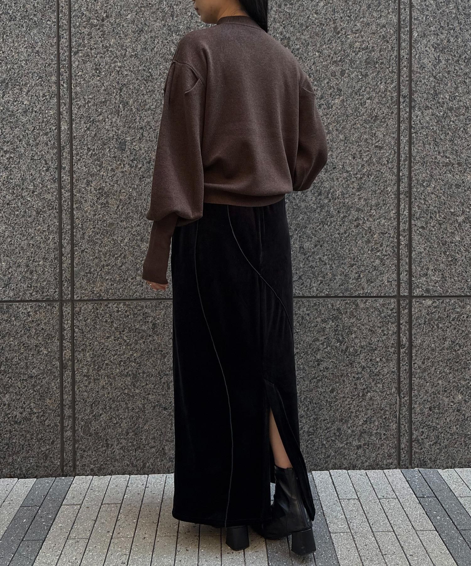 長めの袖リブが腕を細く長く見せ、袖のボリューム感をより引き立てます。