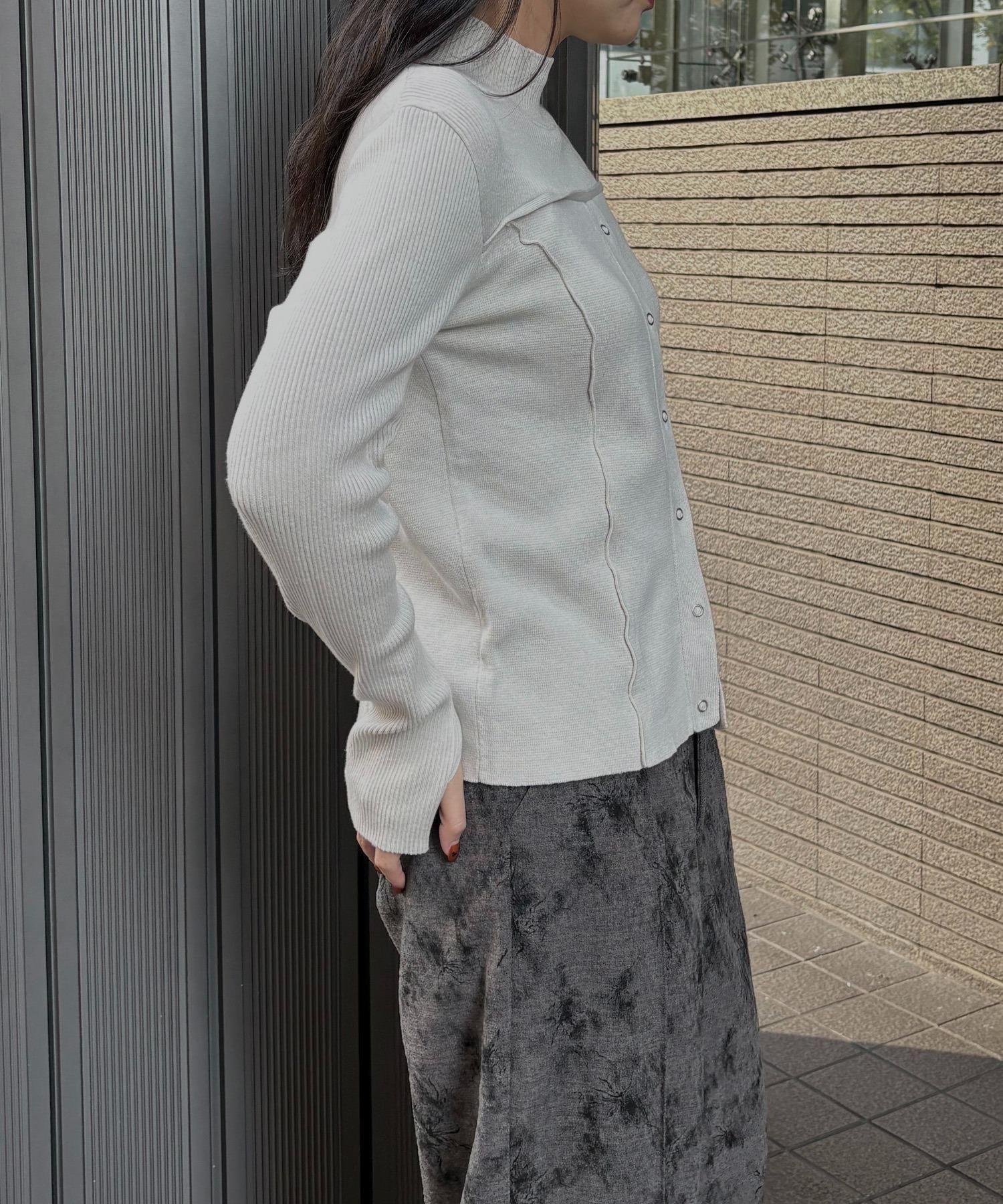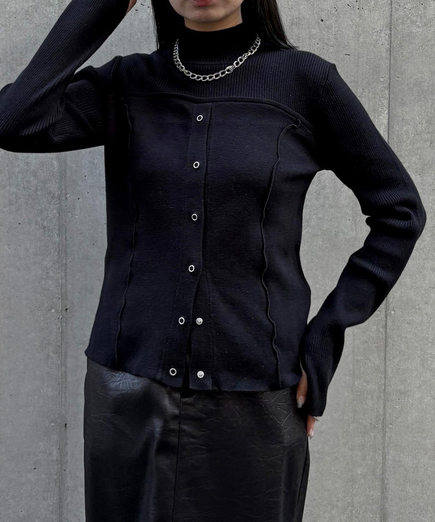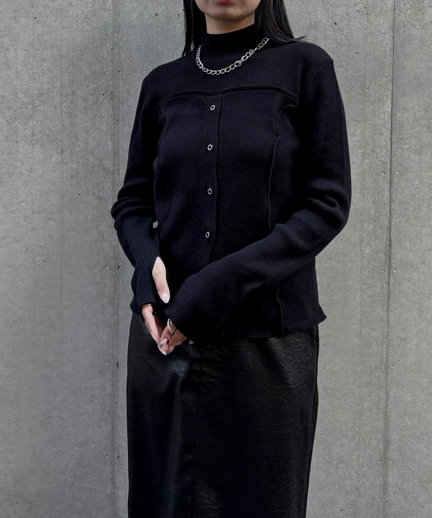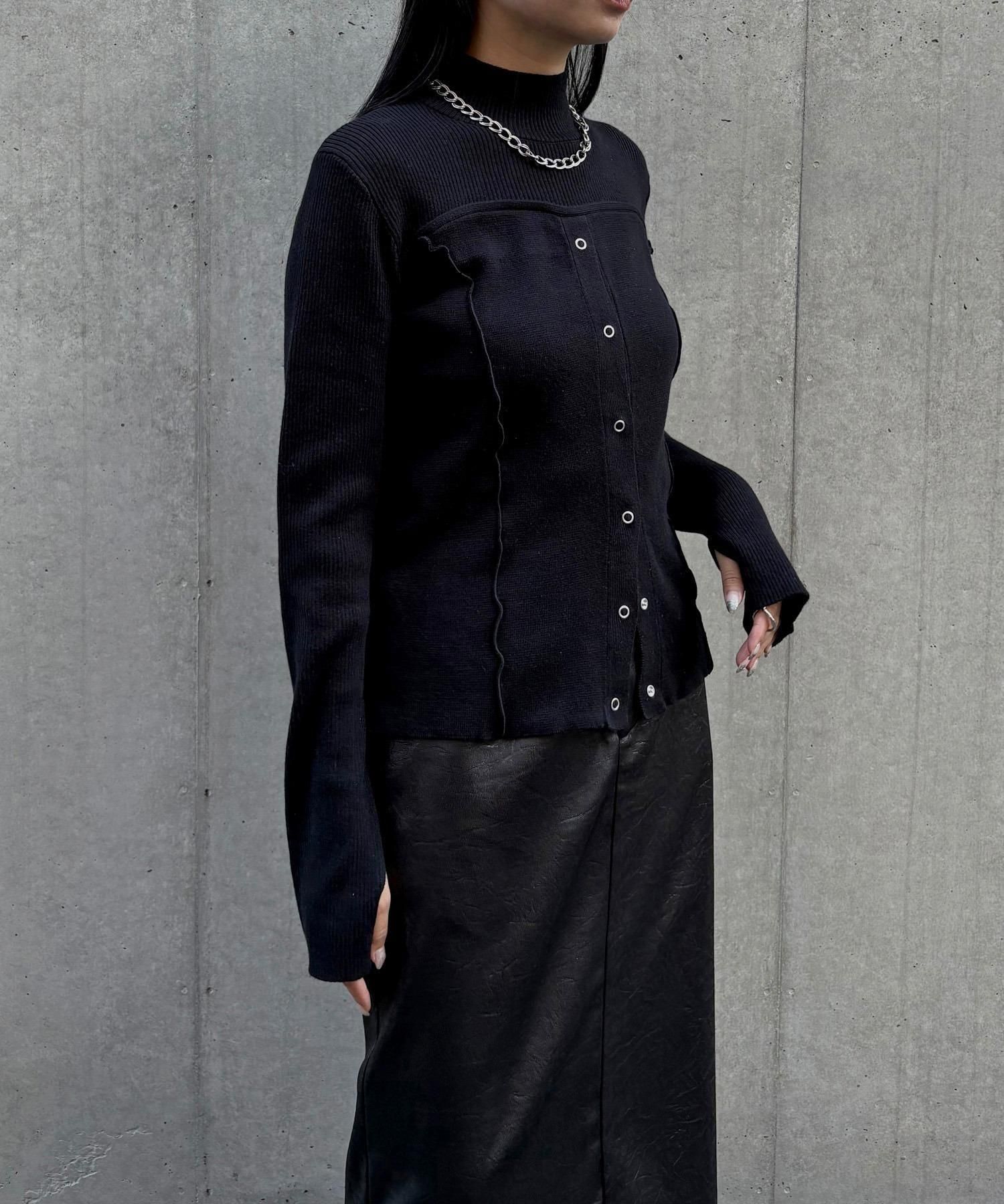 リングスナップは開閉可能で、裾から2つほど開けると抜け感のある着こなしに◎