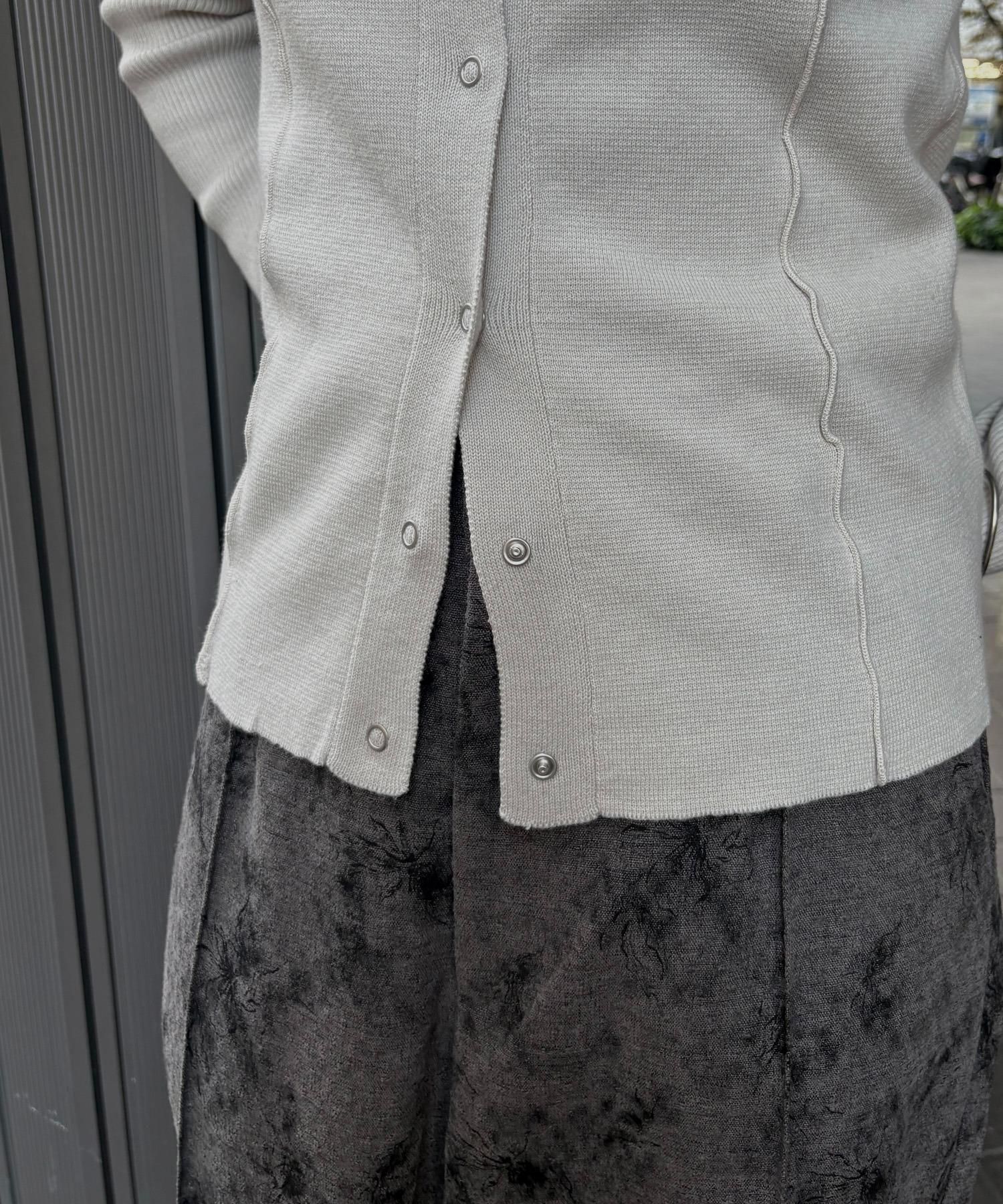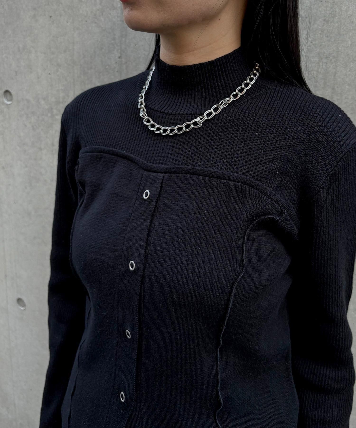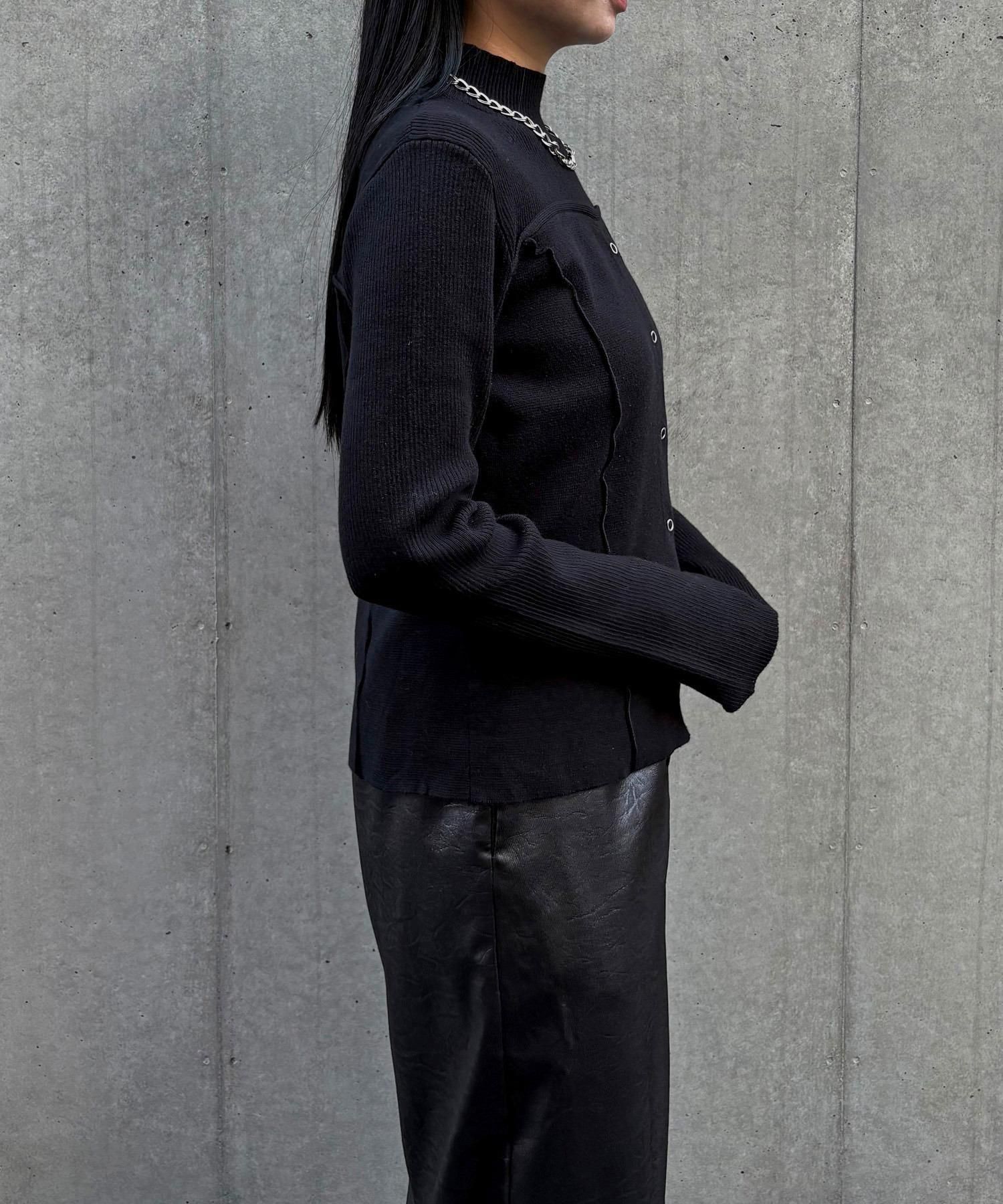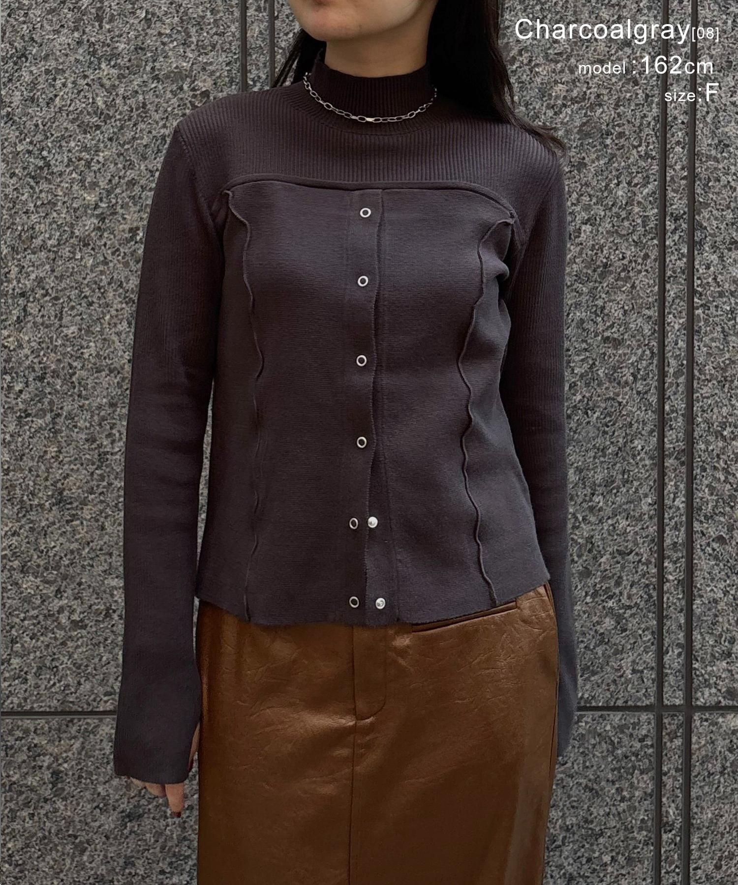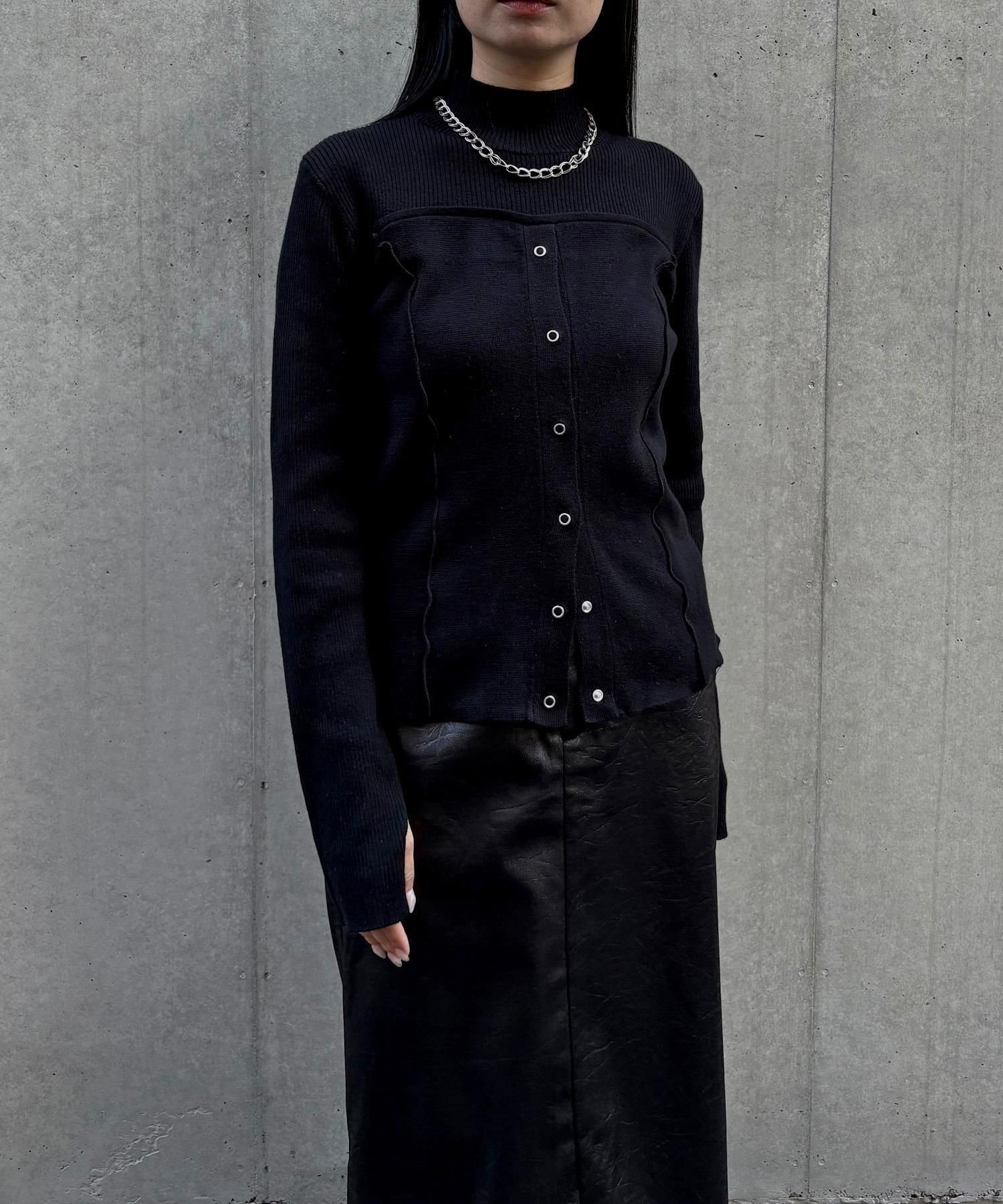 リングスナップは開閉可能で、裾から2つほど開けると抜け感のある着こなしに◎