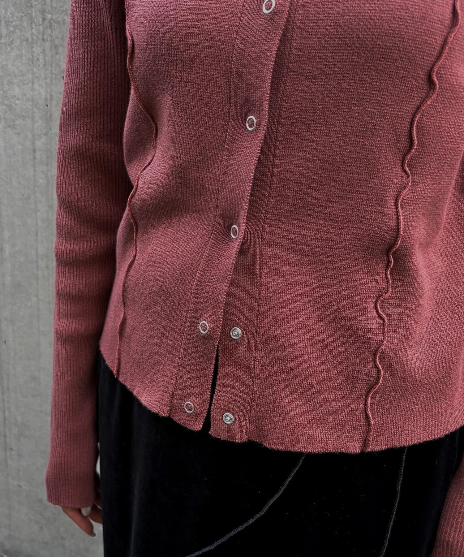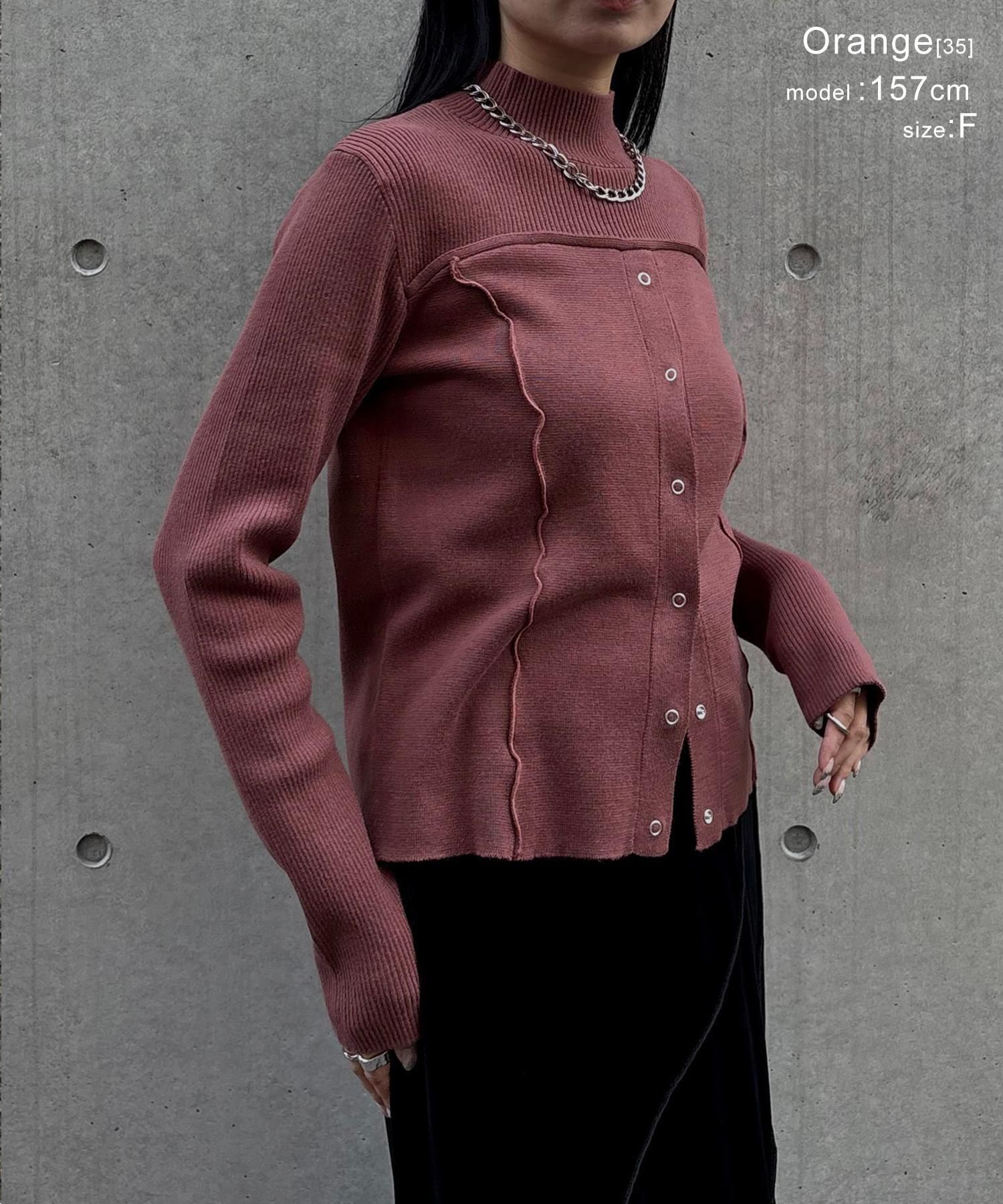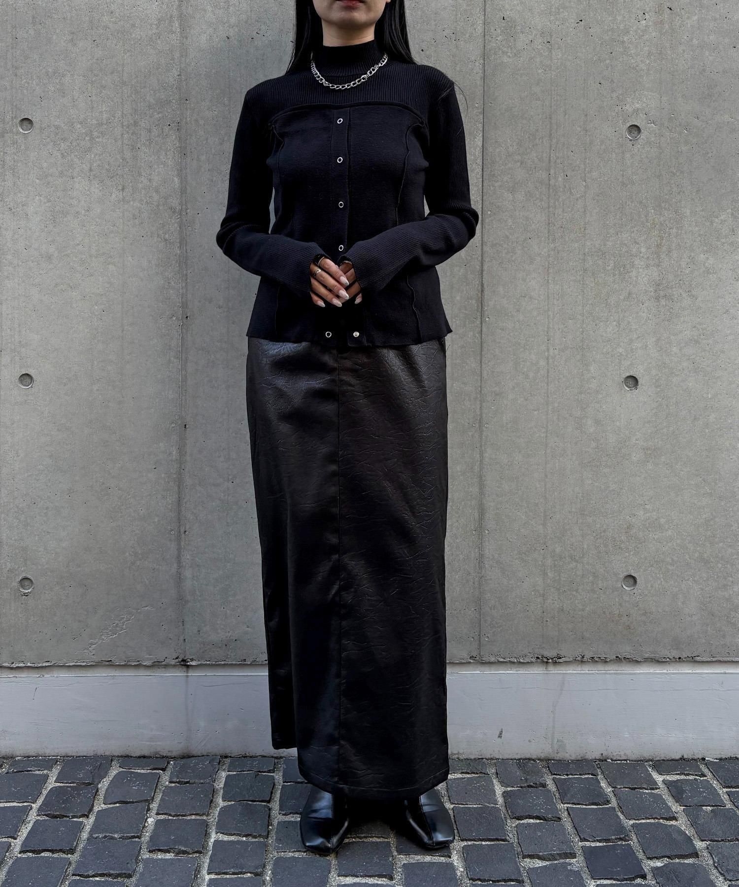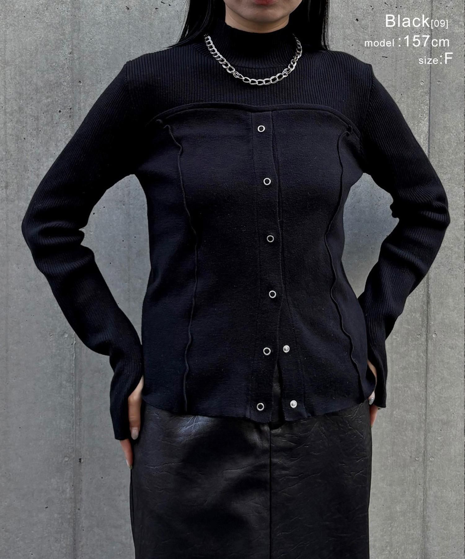 リングスナップは開閉可能で、裾から2つほど開けると抜け感のある着こなしに◎