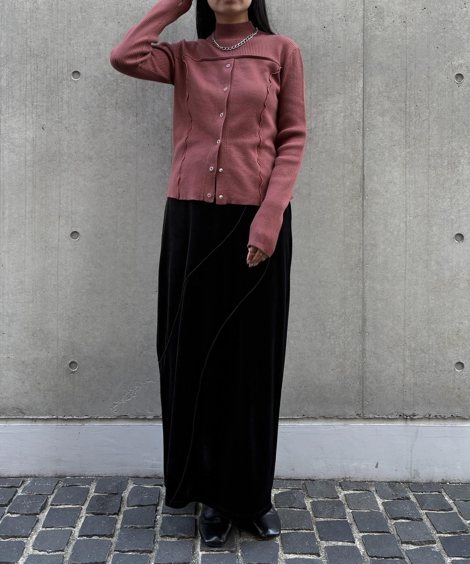 ・レイヤード風のドッキングデザインは一枚でコーディネートを仕上げます。