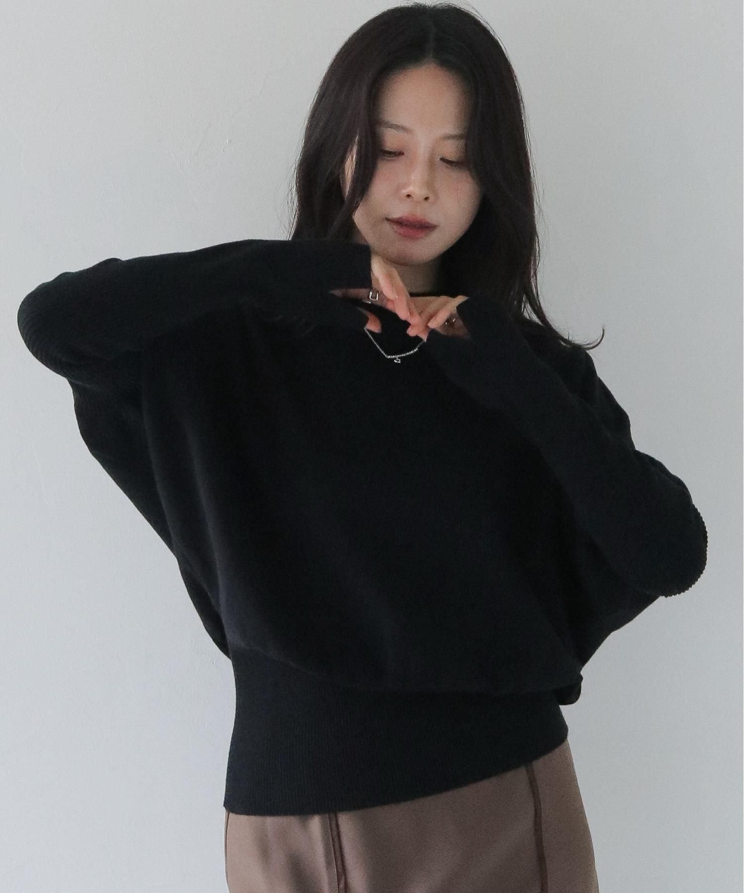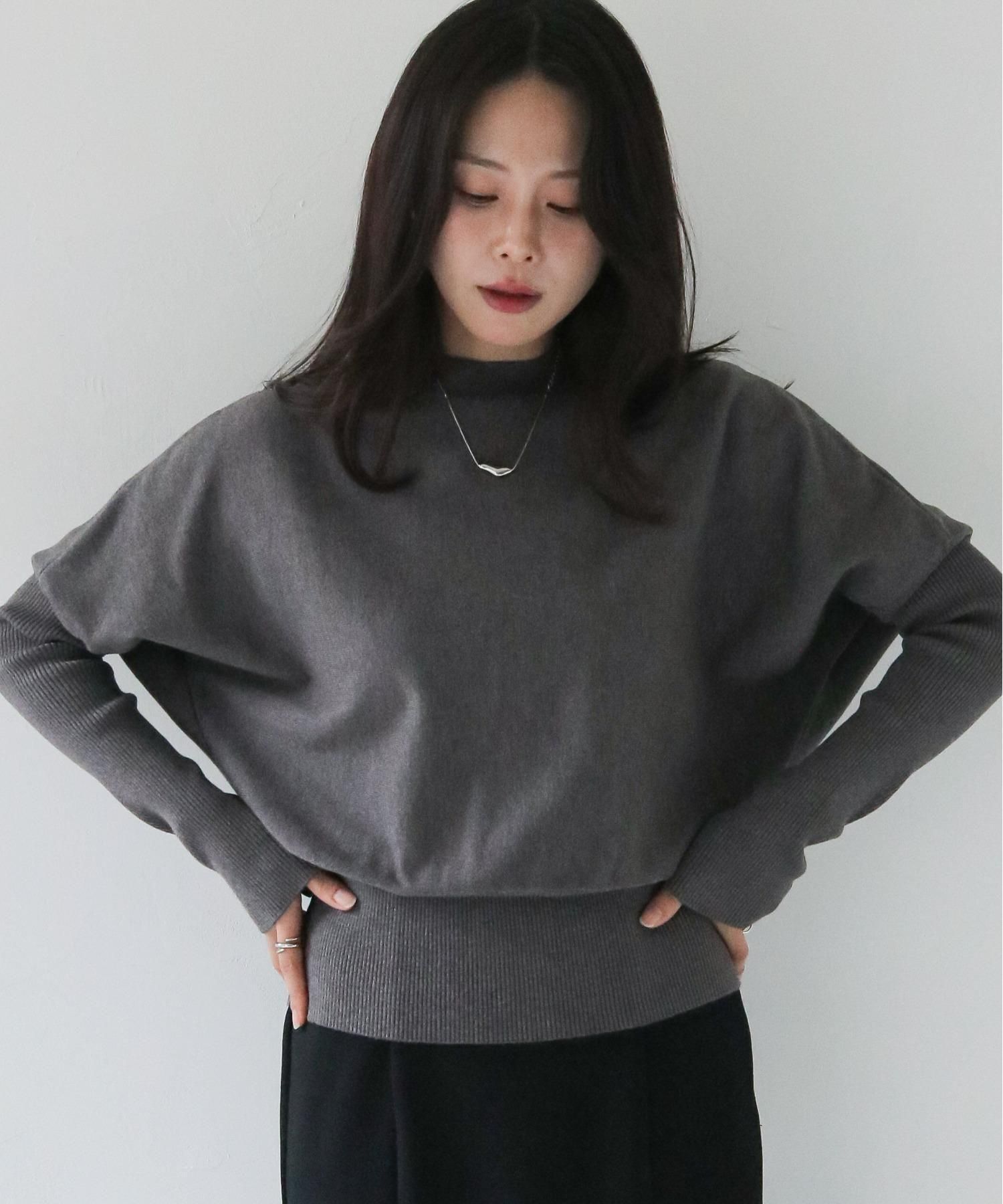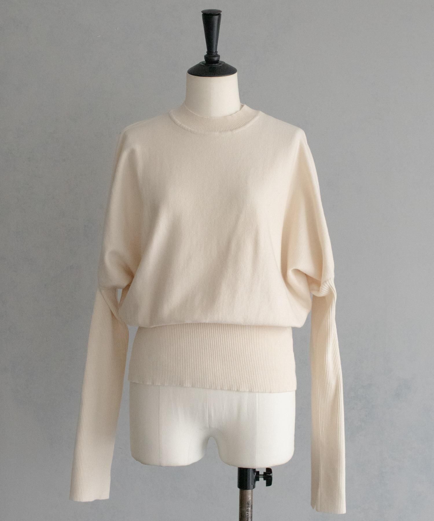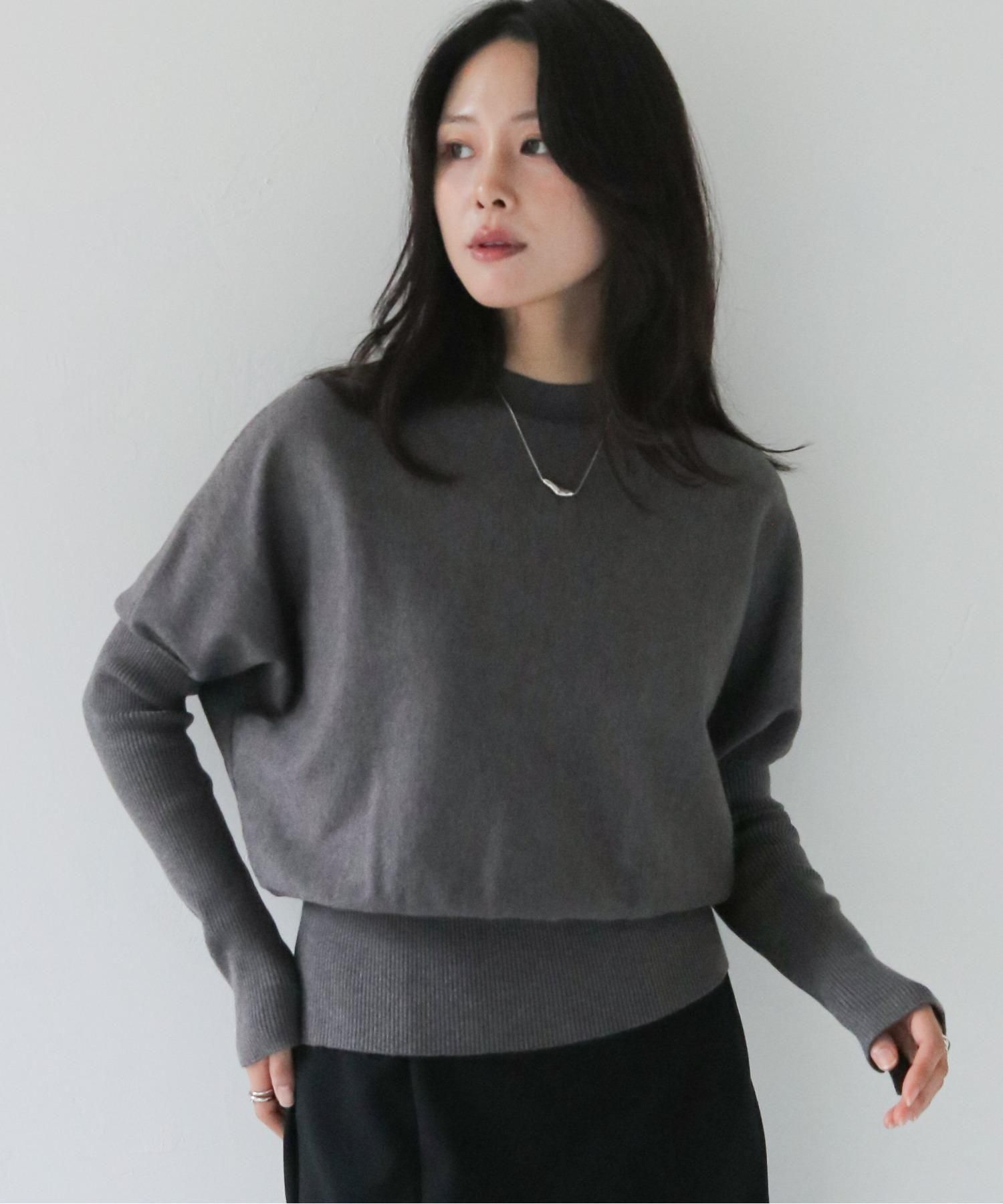 ゆとりのあるドルマンスリーブと、裾のリブでメリハリをつけた絶妙バランスのデザインニット。