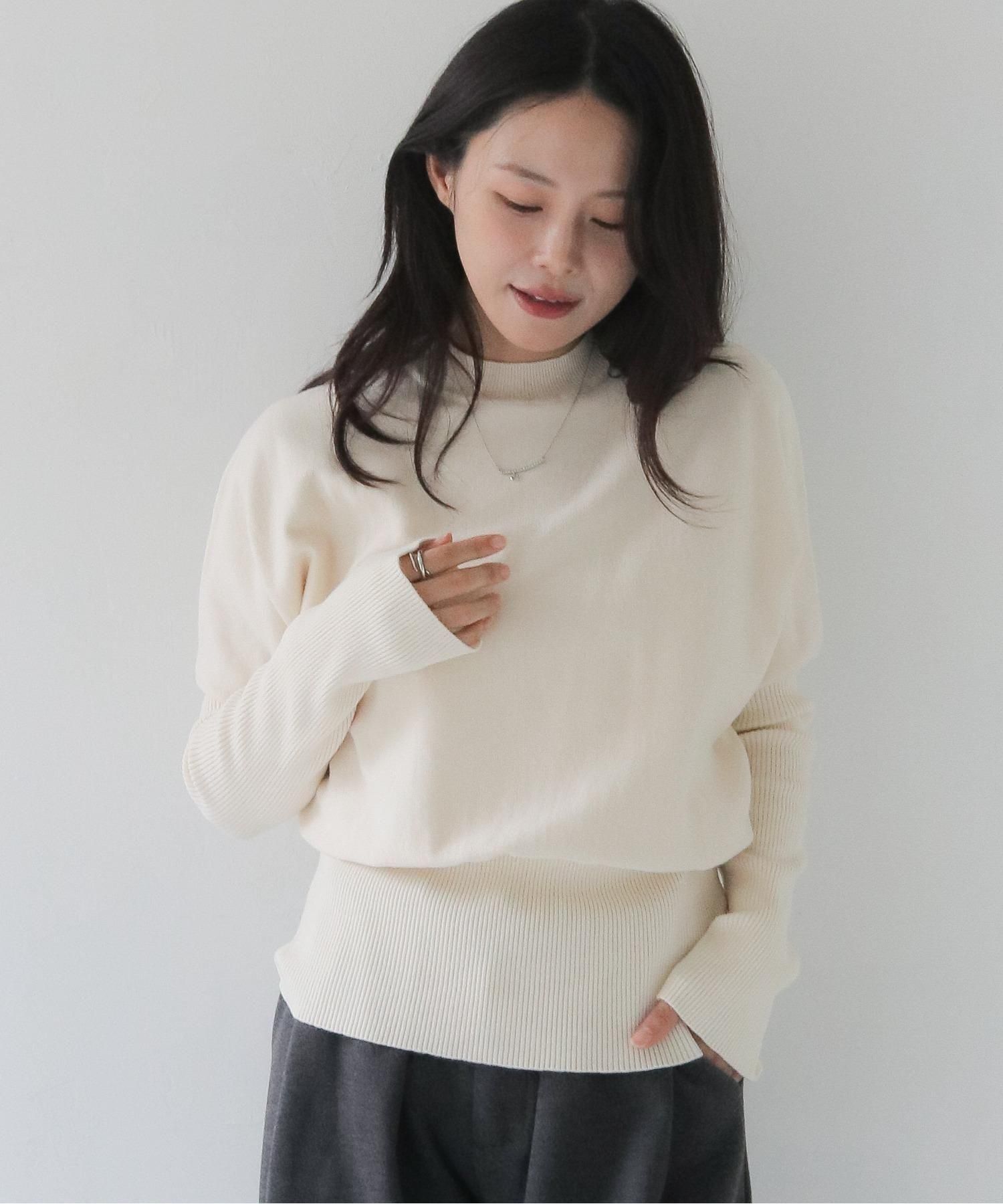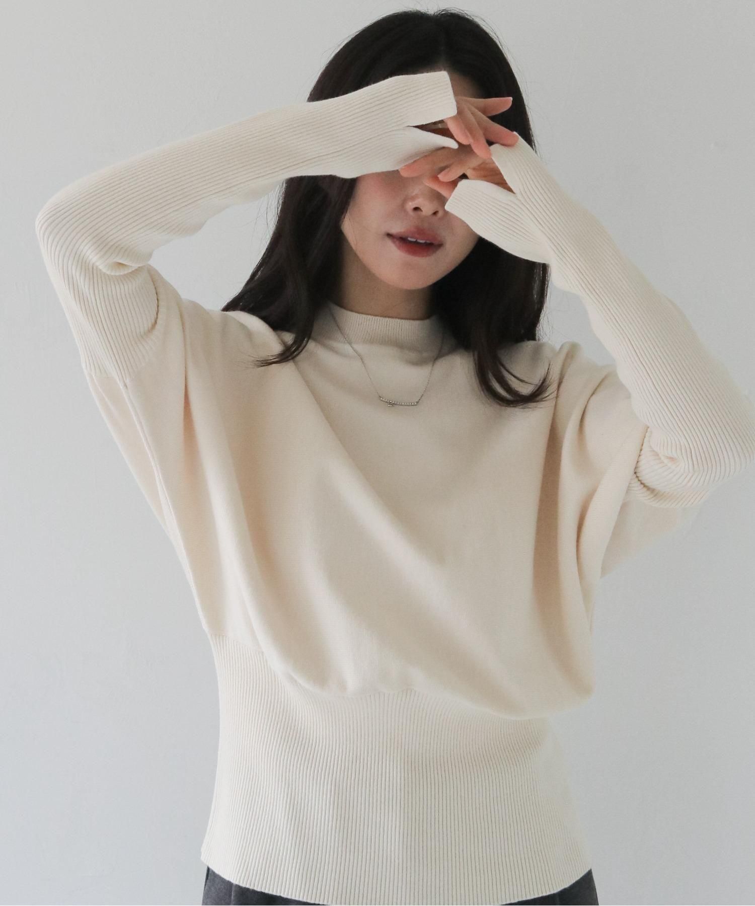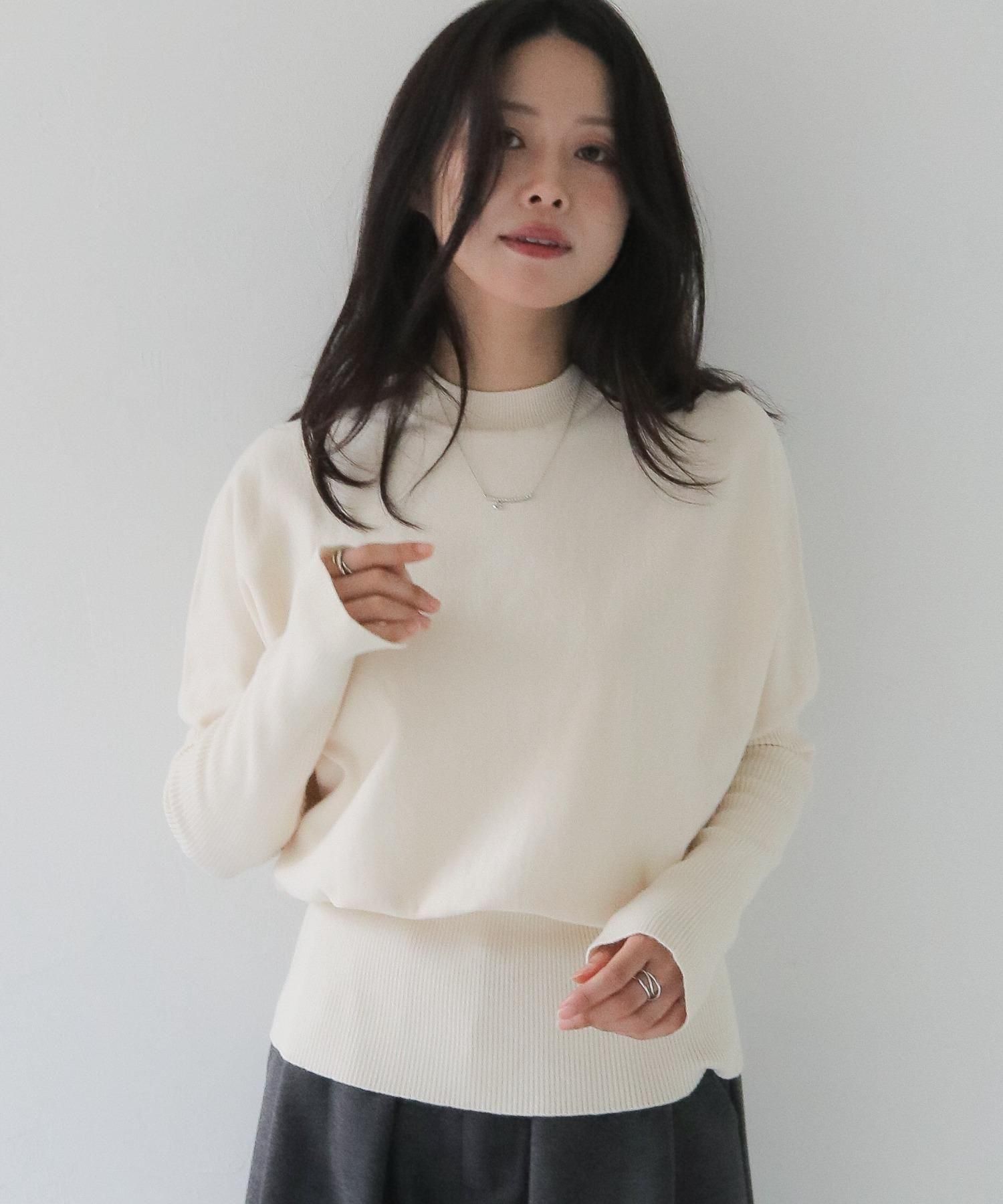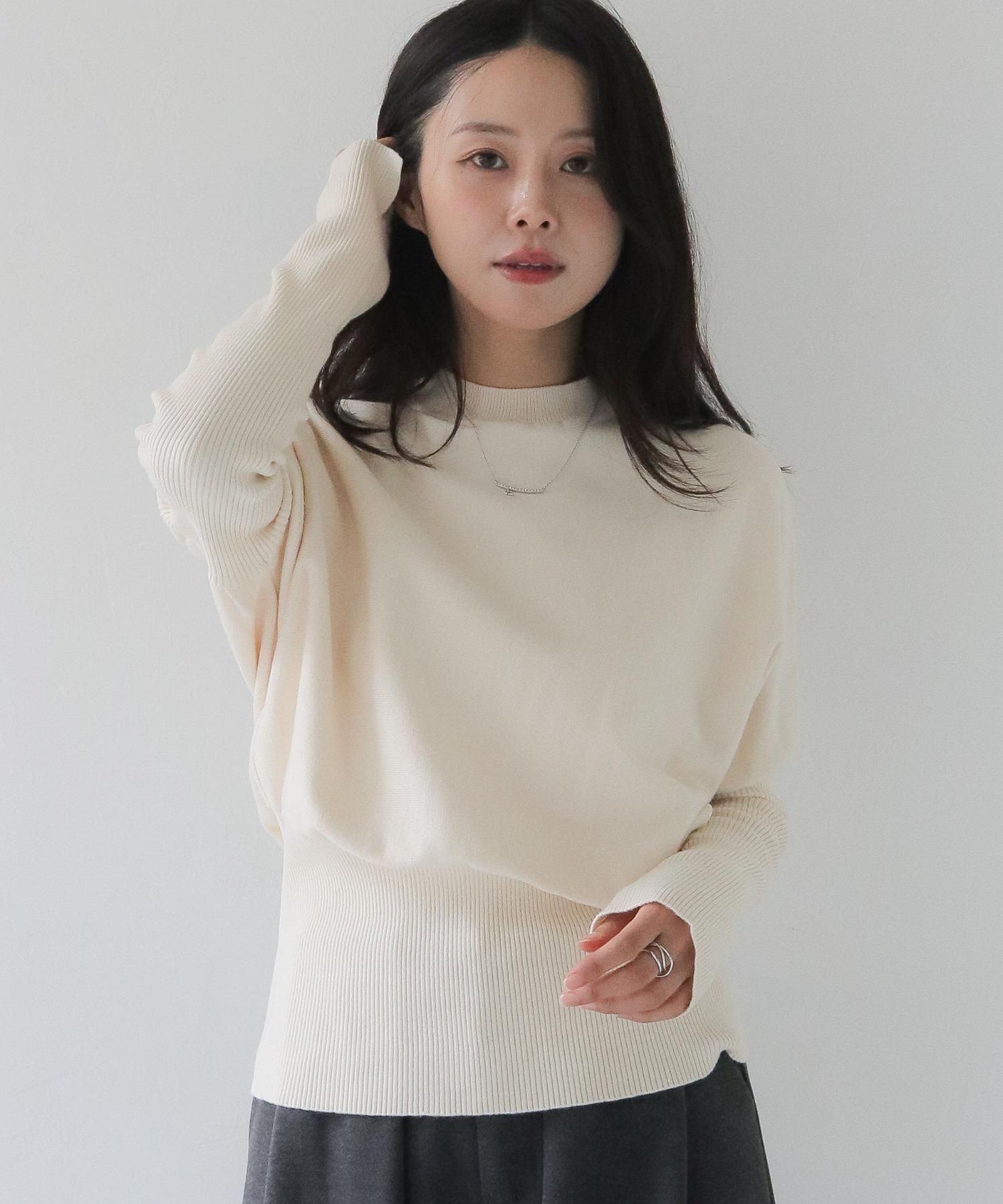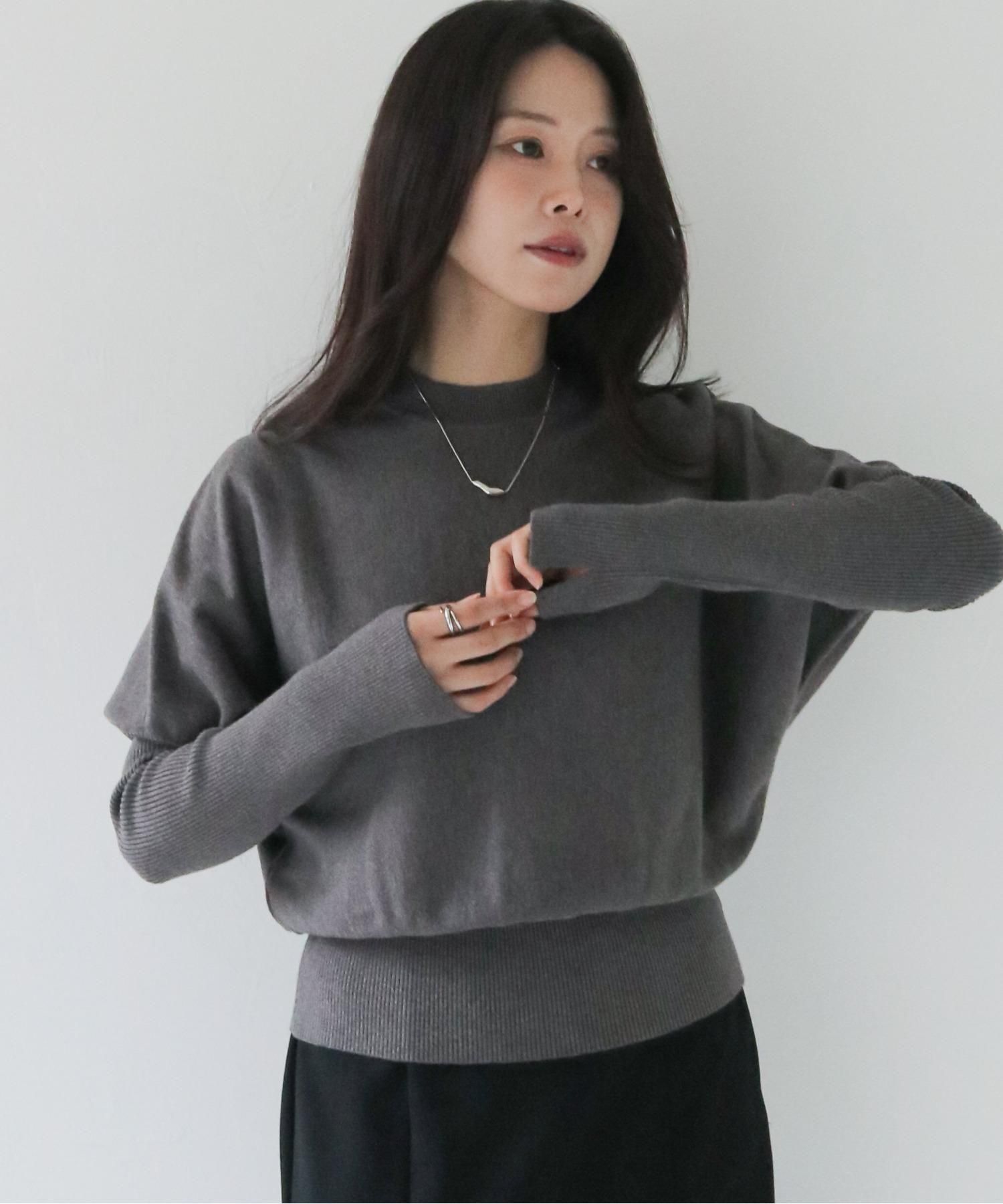 ゆとりのあるドルマンスリーブと、裾のリブでメリハリをつけた絶妙バランスのデザインニット。