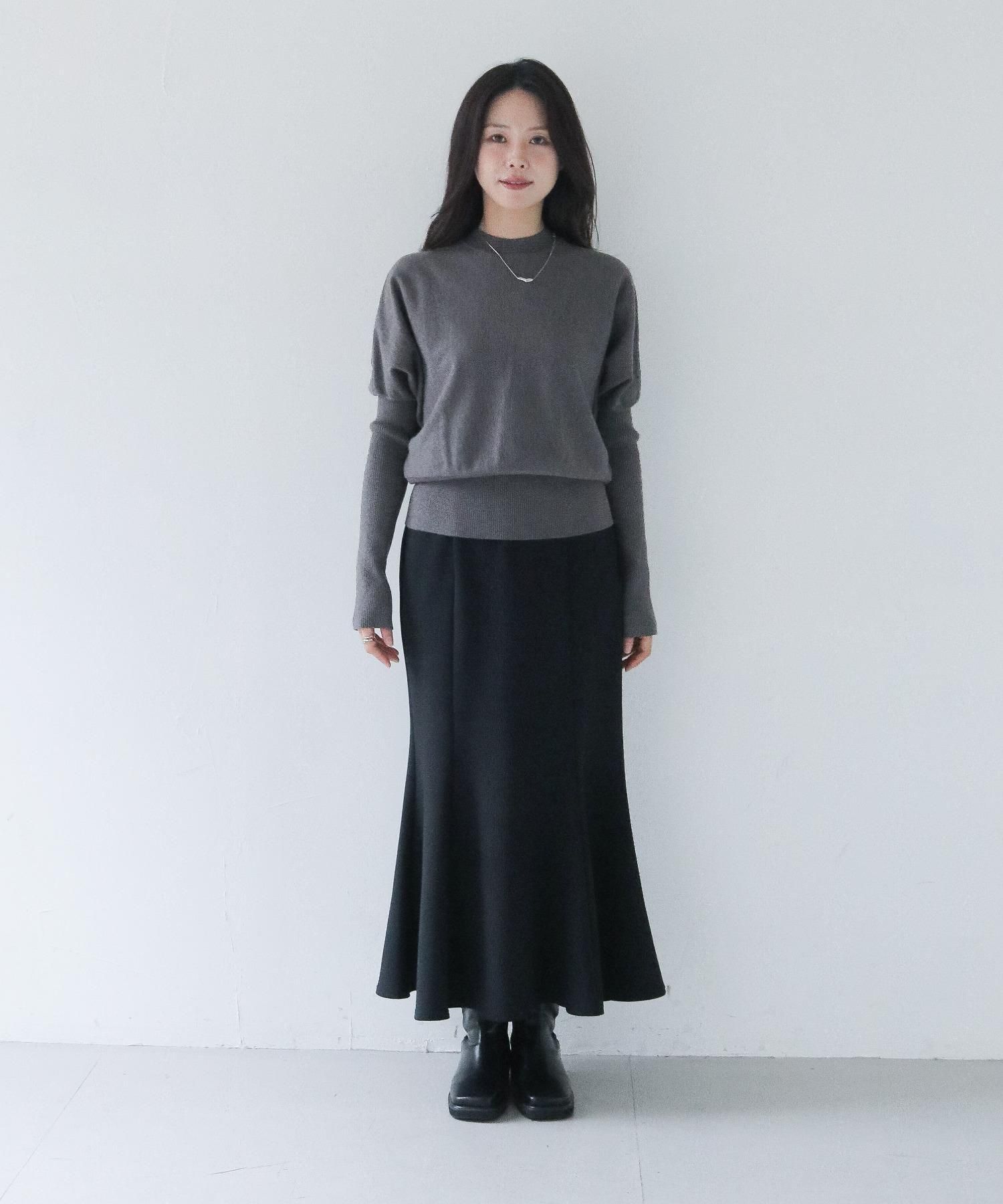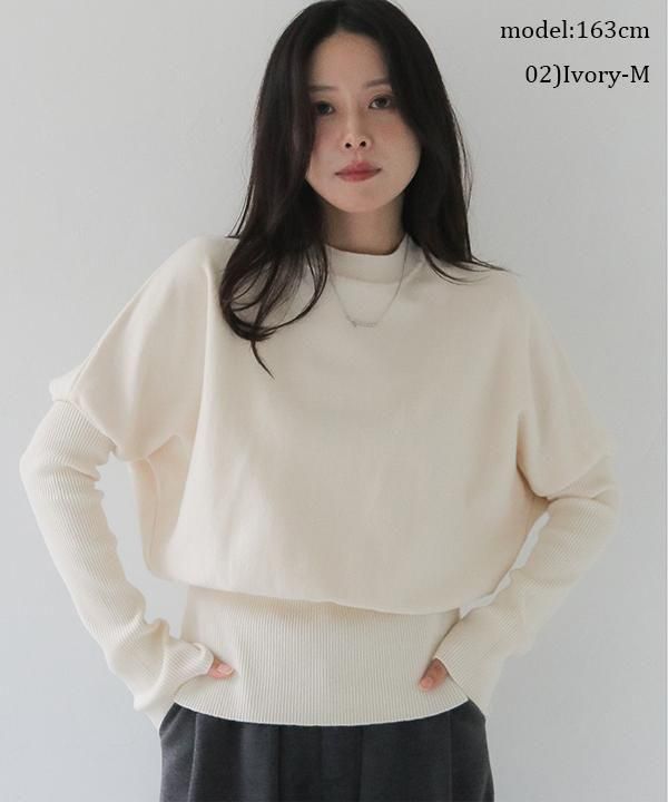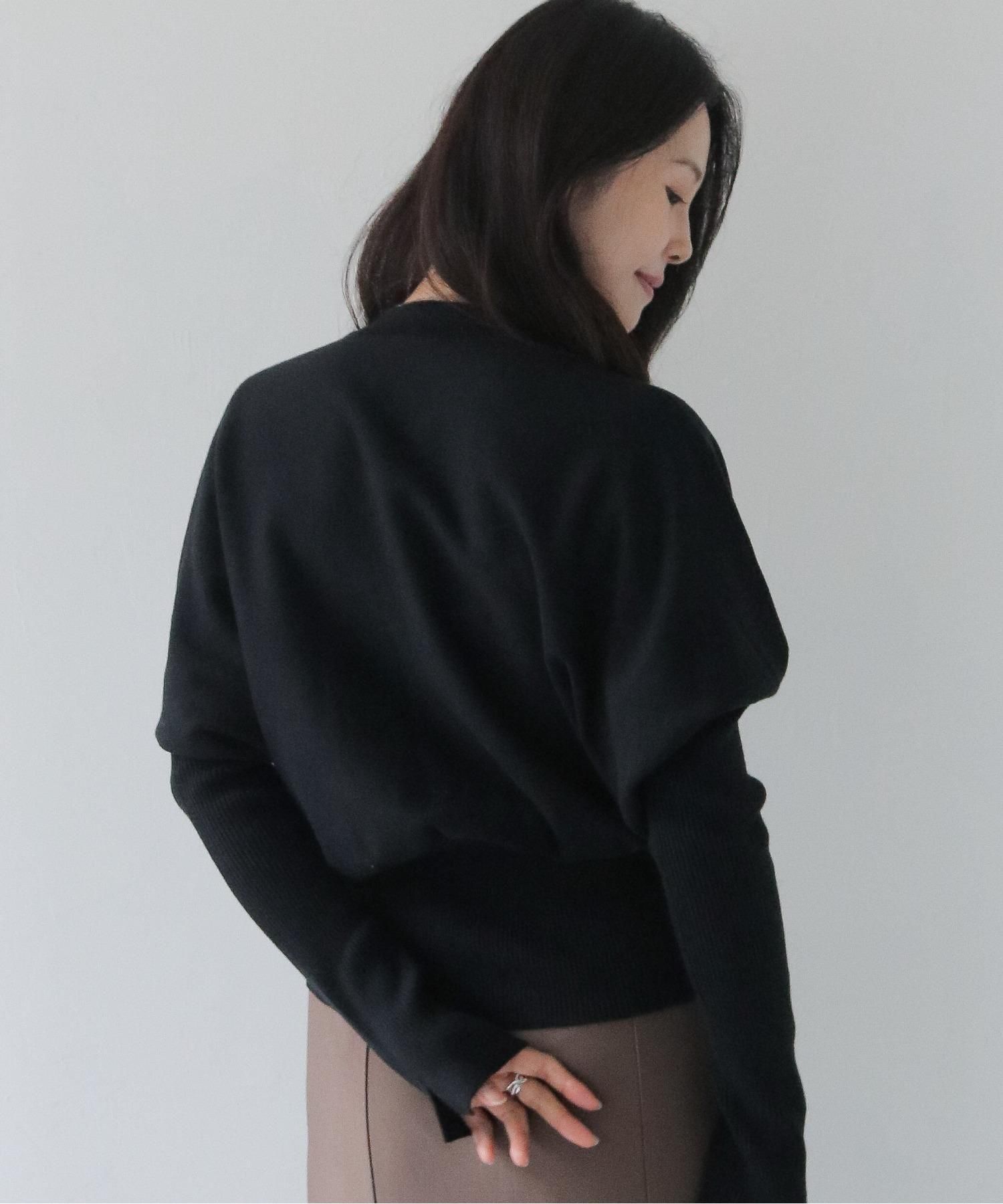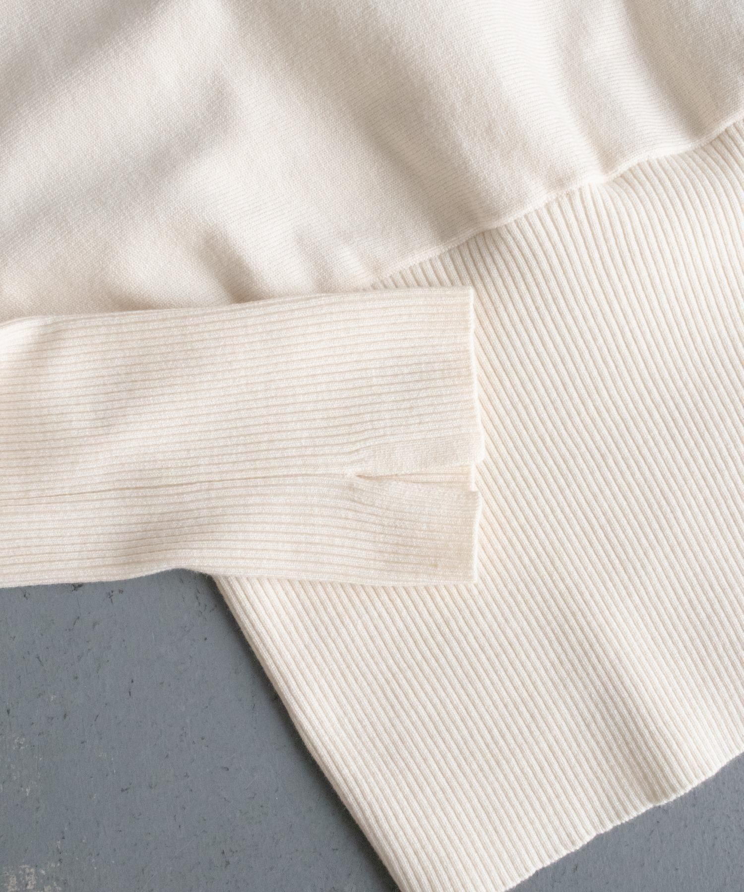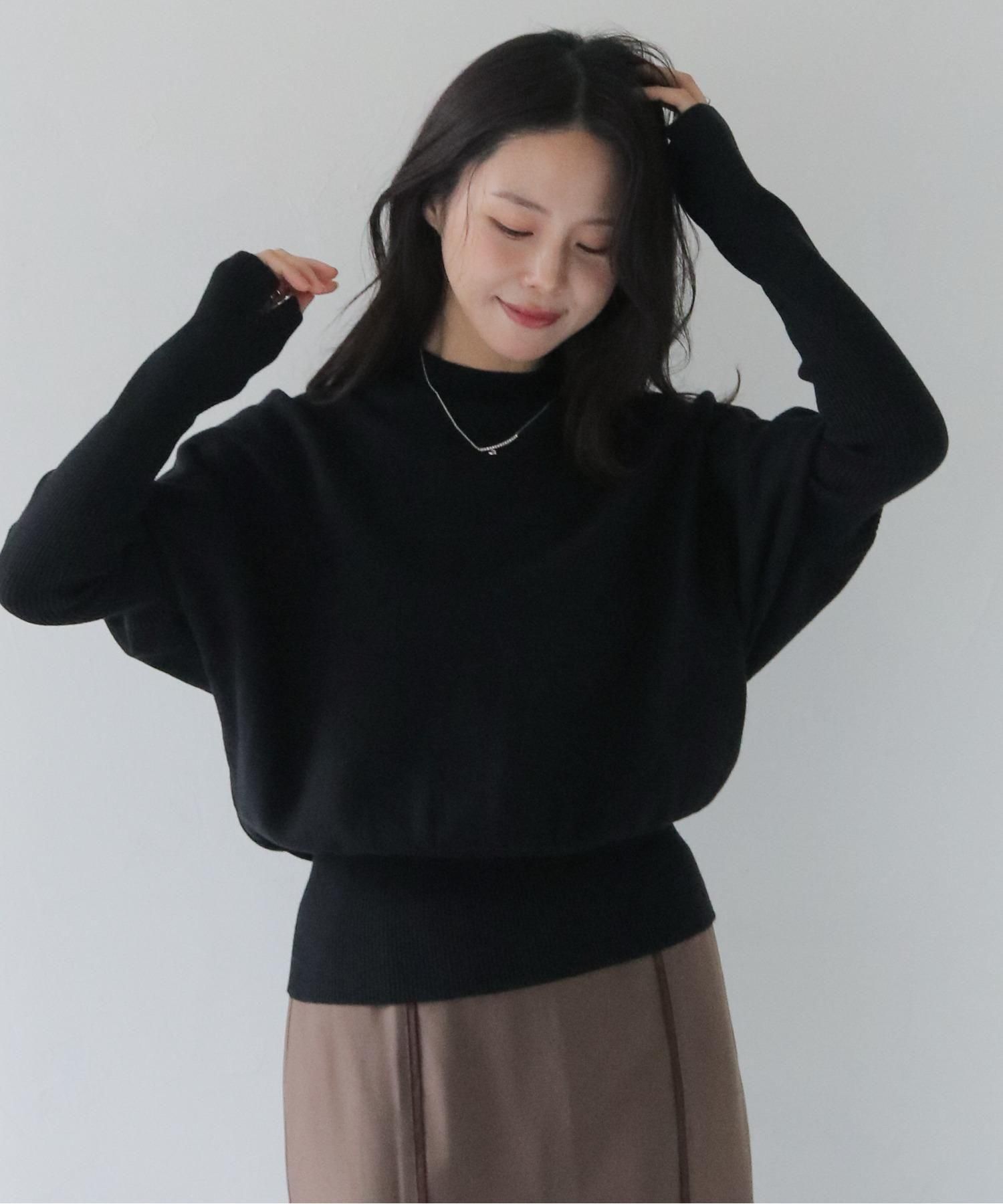 ゆとりのあるドルマンスリーブと、裾のリブでメリハリをつけた絶妙バランスのデザインニット。