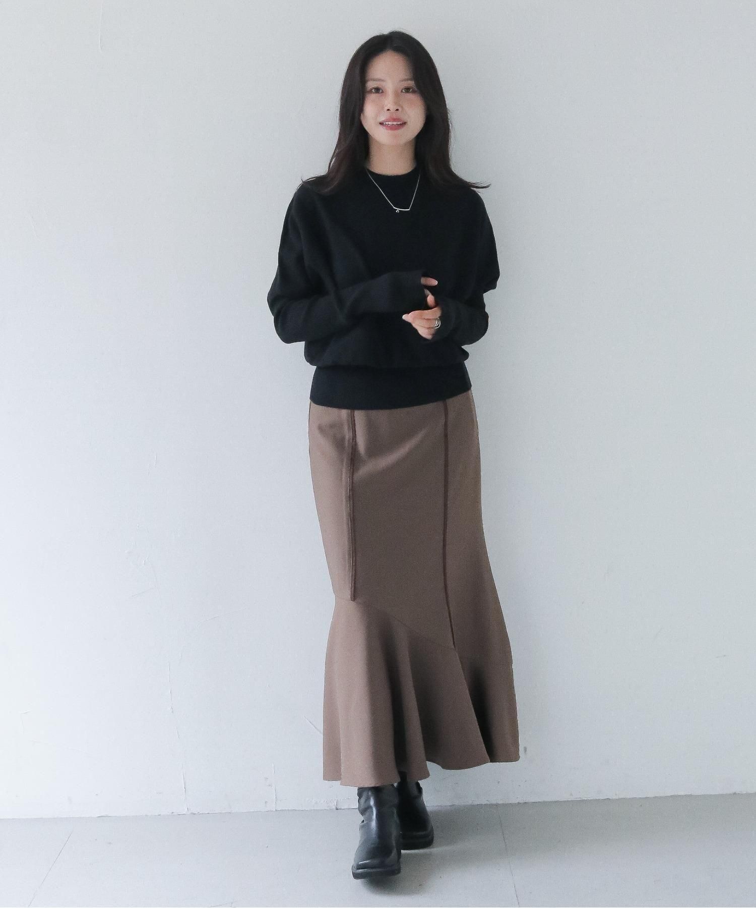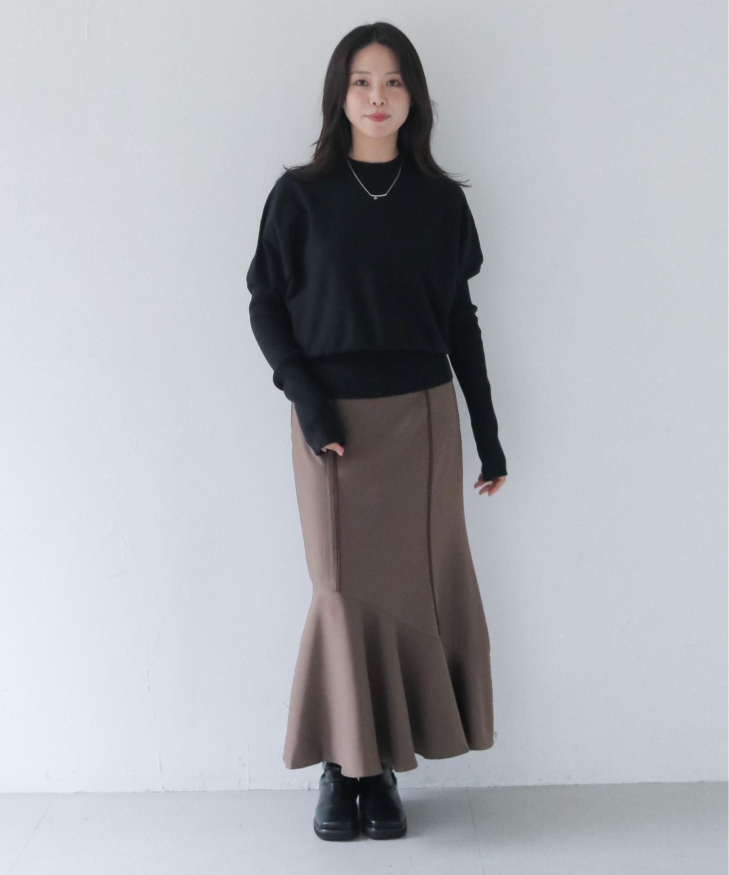 短すぎない着丈でパンツにもスカートにも合わせやすく、オンオフ問わず活躍。