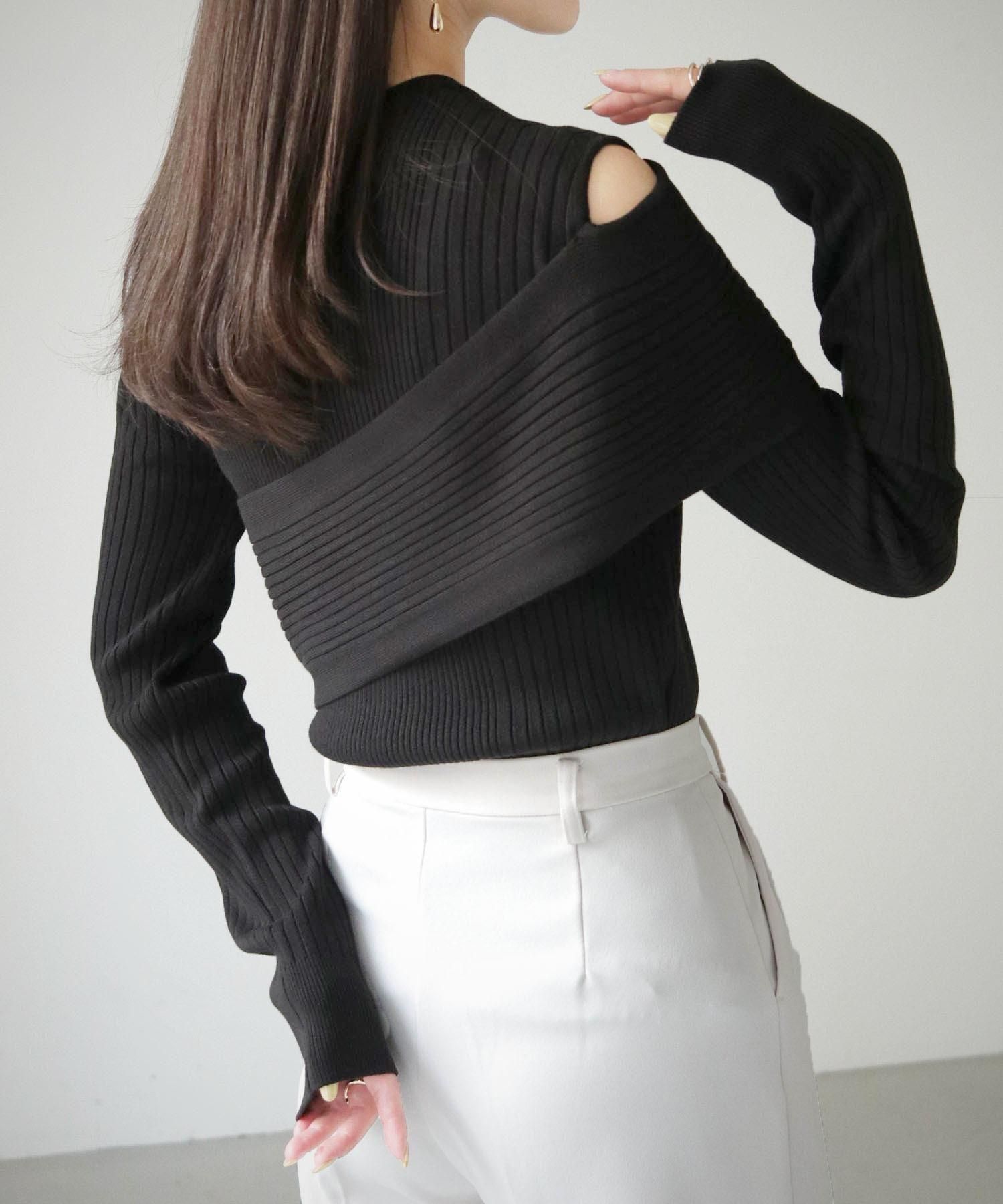 バックスリットのデザインが女性らしい印象を与えてくれるニット