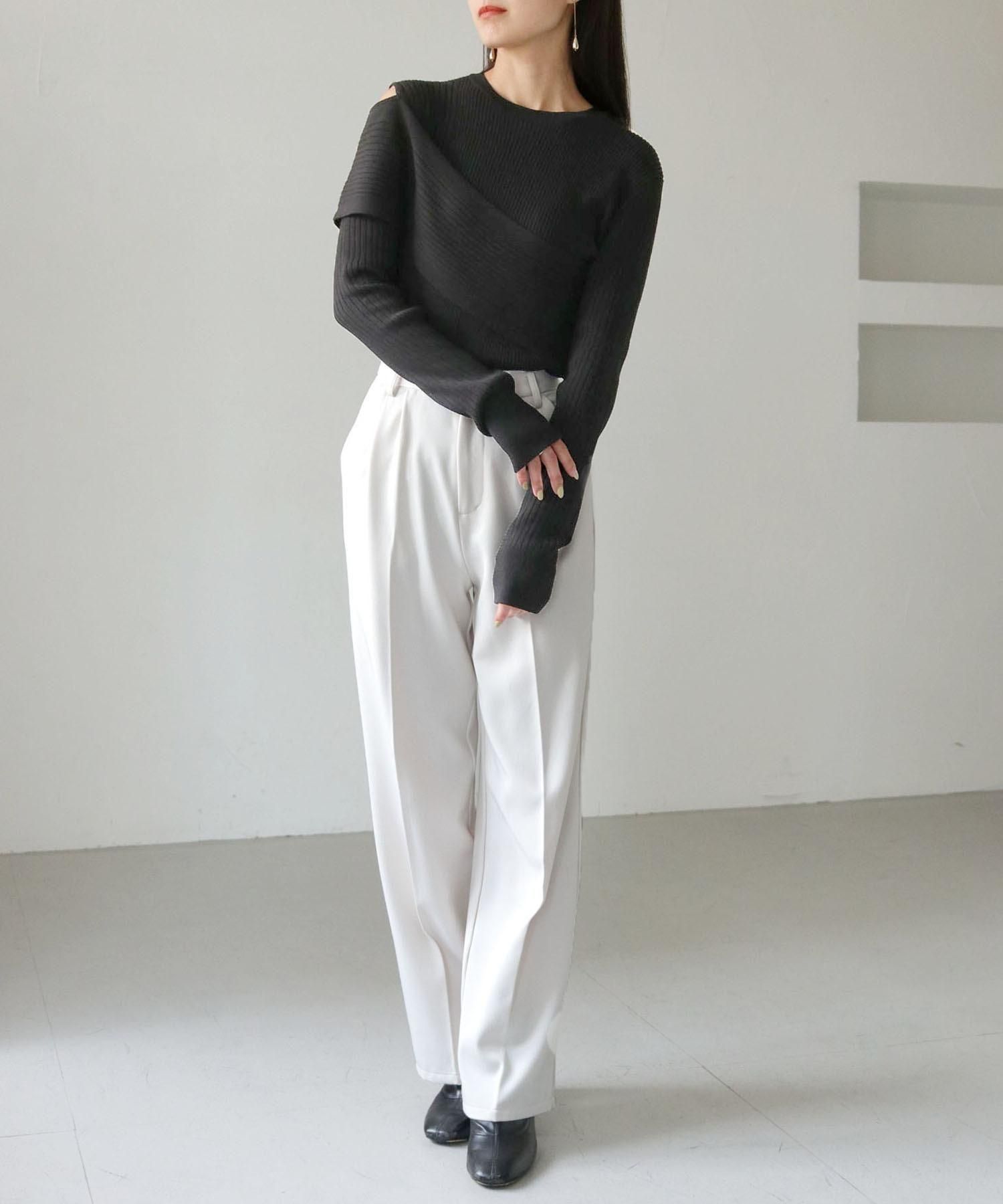 ワイドパンツやボリュームのあるボトムスと合わせるとバランスが取れスタイルアップ効果も◎