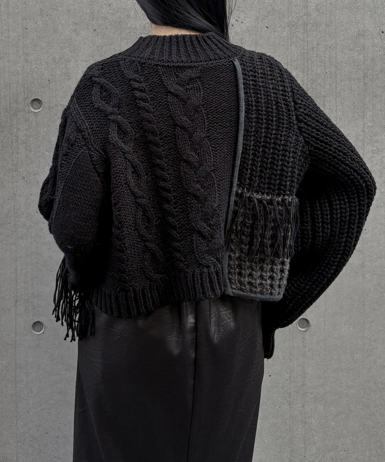 【&g'aime 】編地MIXフリンジニット Mixed Knit Fringe Pullover